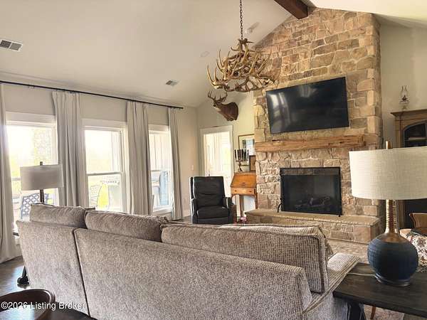 Est $5,394/moCheck out this beautiful 2,289 sq ft, 3-bed, 3-bath home with vaulted ceilings, custom cabinets, and a large center bar in the kitchen. Enjoy warm floors year-round with in-floor heat, a cozy fireplace, and a spacious laundry room. Includes a 2,300 sq ft, 3-bay attached garage with hobby room and full bath, plus a 2,100 sq ft detached garage, two stocked ponds, on 120+/- acres.
