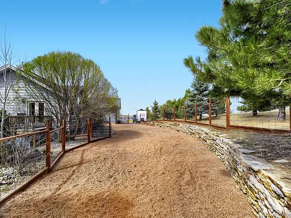 Turnkey horse property just minutes from downtown Elizabeth! Nestled among mature pines, this ranch-style home with walkout basement offers privacy, usable land, and upgraded equestrian facilities including improved stalls, barns, two fenced pastures, and nearby riding trailsLight-filled interior features vaulted ceilings, hardwood floors, spacious living areas, and a main-floor primary suite with private deck and a newly remodeled 5-piece bath (2025). Both main-level bathrooms and the laundry room were fully remodeled in 2025The finished basement includes a rec room, wet bar, bedroom, and bath—ideal for guests or entertaining. Enjoy outdoor living with 2 decks, covered patio, hot tub, and built-in grill station with refrigeratorThe 32x46 main shop is fully upgraded with epoxy concrete floors, gas heater, and two 220V outlets—perfect for equipment, vehicles, or hobbies. Property includes 3 total outbuildings, all constructed with durable 2x6 metal studs, including a 12x39 horse barn and a 24x50 building with 2-car garage, chicken area, and horse stallsAdditional highlights include an oversized 3-car garage, RV parking, and quick access to Denver, DTC, and Castle Rock. 2 beehives, Chickens and Barn cat available to stay for new owners. Backs to 180 Conservation Easement and Next to 20 Acre HOA owned open-space.