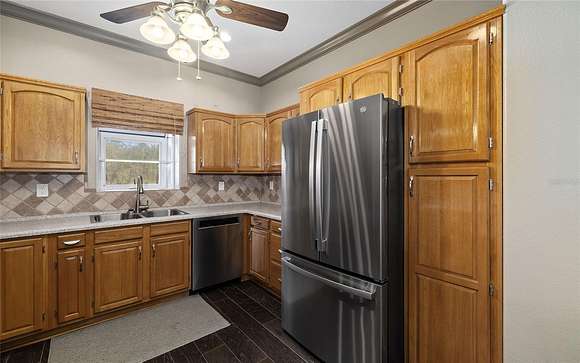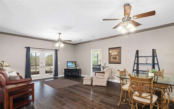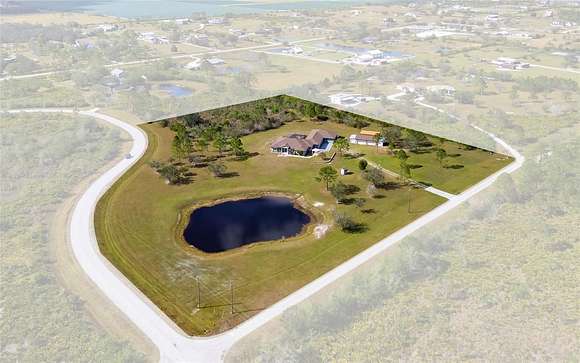 Privacy. Fresh air. Peace and quiet. Come live a country lifestyle with plenty of room to roam inside and out! Farm animals, poultry, food gardens and wildlife watching are welcome here. At night you can look up and gaze at the brilliance of the star-lit sky. In Myakka City, this 7.3-acre property offers a secluded location just 20 minutes from in-town amenities at Lakewood Ranch and the Interstate 75/SR 70 interchange. This country compound ticks all the boxes. main house with four bedrooms and three baths, separate guest house with two bedrooms and two baths, four-car attached garage, six-car detached garage, oversize carport, well pump shed and freshwater pond. Offering 4,808 square feet of combined living space, the flexible floor plan can be configured to your heart's desire. Luxury features include engineered hardwood floor in living areas, crown molding, solid wood cabinetry, impact glass windows and doors, built-in fire pit and newer roof in 2020. Both houses are fully independent with separate entrances, kitchens, laundries and covered lanais. They share a screened-in swimming pool and outdoor patio with wood-burning fire pit. The detached 1,000-square-foot, four-car garage has two attached single garages and creates unlimited possibilities for pursuit of hobbies, family life and homesteading. Nature lovers can experience the real Florida in two nearby state parks. Nature walks, bird watching, kayaking and overnight camping are available at Lake Manatee State Park and Myakka River State Park. For those who thrive on outdoor challenges, TreeUmph! Adventure Course for climbing and swinging through the trees is just seven minutes away. In all, come home to an incredible place to live, approved by Mother Nature.