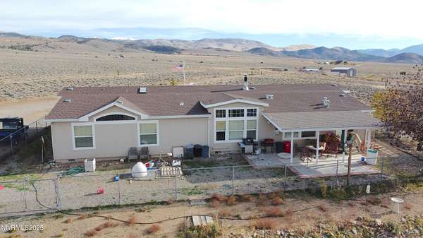20 acre off grid retreat near Lake Topaz with beautiful views of the Sierra Mountains. 2,886 sf manufactured home converted to real property. Self contained with propane, well, septic, solar power, battery bank and back up generator. Quonset garage/shop, 2 additional outbuildings, fenced with remote gate control, wood burning stove plus propane fireplace, nice sitting porch and covered patio. Eastside is a County Road, maintained by residents.