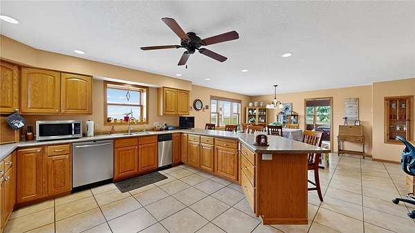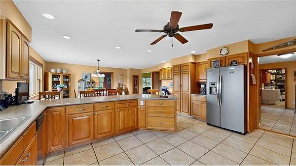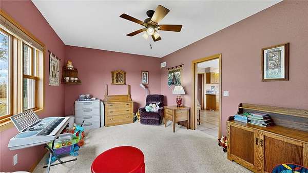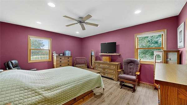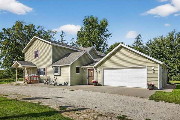 Meticulously maintained and thoughtfully remodeled 4-bedroom, 3 bath home offering both comfort and functionality. Hobby farm nestled on 22.13 acres along a dead-end road just off the hard surface, you'll enjoy the peaceful privacy with no neighbors in sight. The home offers quality finishes throughout, including solid doors, oak trim, custom cabinetry, tile floors, in-floor heat, and energy-efficient windows. The main floor boasts a gourmet kitchen with 3 pantries, living room, laundry, office/den, primary suite with walk-in closet, additional bath and spacious breezeway/mudroom. Second level offers 3 nice size bedrooms, family room, storage room and full bath. Outside you'll find 17 acres of fenced pasture with water for the horses, 1 tillable acre with the balance in yard & garden. For homesteading enthusiasts, the land is abundant with 20 apple trees, raspberry patch, rhubarb, asparagus, and a large vegetable garden. An outdoor boiler offers efficiency and economical heating. The heated 2-car garage and thoughtful upgrades throughout make this property move-in ready. A rare opportunity to own a turn-key acreage with privacy, functionality, and a lifestyle you've been looking for.