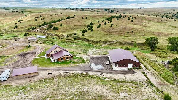 Nestled northeast of Curtis, Nebraska, this 157+/- acre property features a custom 3,500+ sq. ft. log home, built in 2022, with rustic charm and modern comfort. A newly built 48x80 insulated shop offers flexible space for horses, equipment, or workspace. With sweeping views, excellent access, and abundant wildlife, it's perfect for country living, agricultural business, or recreational activities.
