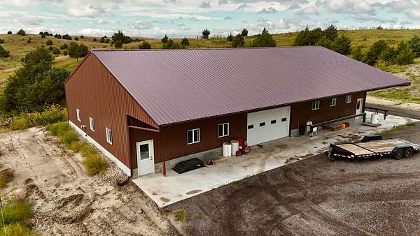 Newly constructed in 2024, is the 48'x80? shop that is fully insulated with concrete floor, massive trusses, and a 12-foot front overhang. It's plumbed for a bathroom in the southeast corner, and the west side is ready to be outfitted as a horse barn, making it a versatile space for work, storage, or animals.