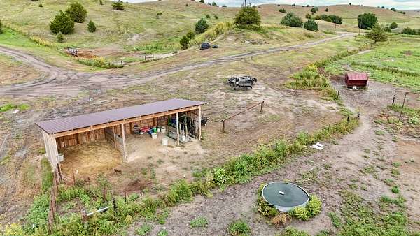 Accessible year-round by well-maintained county roads, the property features several well-kept horse paddocks, newer boundary fencing, and abundant water sources including a new domestic well, three water tanks west of the house, and a functional windmill feeding several tanks. The 157 acres offer deep canyons, mature trees, and healthy native pasture ready to put the pounds on your livestock.