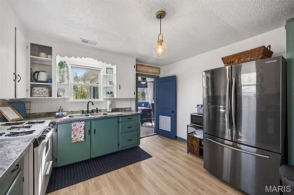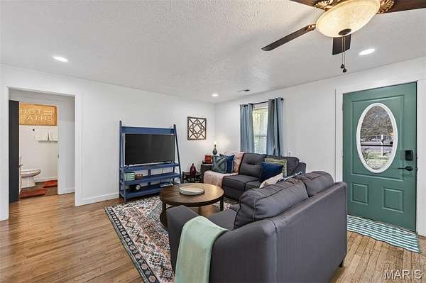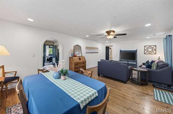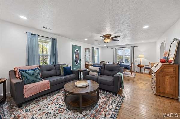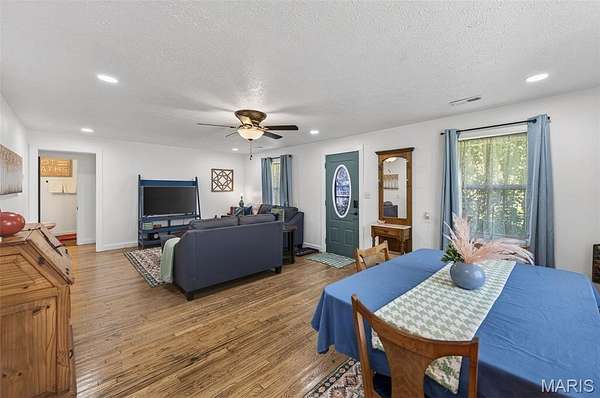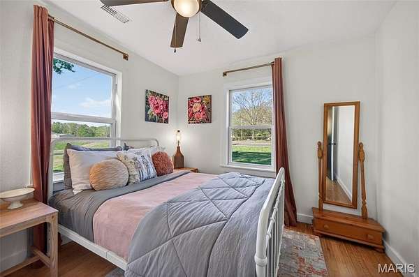 This one is it! Take a look at this adorable bungalow conveniently located close to I-44 and the west gate of Fort Leonard Wood. This 2 bedroom, 1 bathroom home is currently being used as a 3 bedroom thanks to a tandem room that offers flexible space for an additional bedroom, office, or nursery. Step inside and notice the charm of the hardwood floors along with the spacious living and dining area. The kitchen has been updated with trendy modern colors and features a large stainless refrigerator and gas range. The bedrooms share a common bath, while the primary bedroom connects to the tandem room for added versatility. Outside, you'll find a nice detached 2-car garage, all situated on 9.15 acres. As an added bonus, the home is currently operating as an active Airbnb, and the seller is willing to sell it furnished for an additional price.