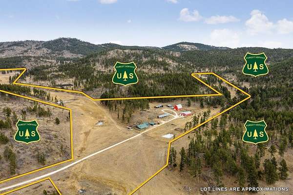 Listed by Phil Lampert 605-391-9358 & Amanda Carlin 605-440-7587 HORSE RANCHER ALERT! Small ranchette just south of Custer, SD - approximately 47 acres +- bordering thousands of acres of USFS lands. This property offers everything you need to operate a small horse operation. The attractive ranch home, attached to an historic log cabin, features 4 bedrooms and 2 baths. Inside, the newly renovated kitchen shines with new cabinets, granite countertops, and beautiful modern appliances. While the kitchen has been updated to perfection, it has also retained its charm with a perfectly working old cast iron cook stove, blending modern convenience with rustic character. Additional improvements include a bunk house, historic horse barn, machine shed, carport, horse corrals, and other outbuildings - plus a spring-fed ponds. Recent renovations and improvements enhance both function and appeal (see detailed list in documents). The bunkhouse features 3 bedrooms, a bath and a kitchenette. Enjoy scenic vistas in all directions, including stunning views of the Beecher Rock formation. Protective covenants are in place to safeguard your investment. The final legal description will be determined by a new survey splitting off approximately 6 acres +/- in the Southwest corner of the parcel, which the Sellers plan on retaining. (See the aerial map in documents)