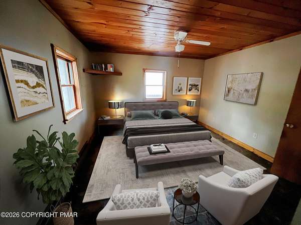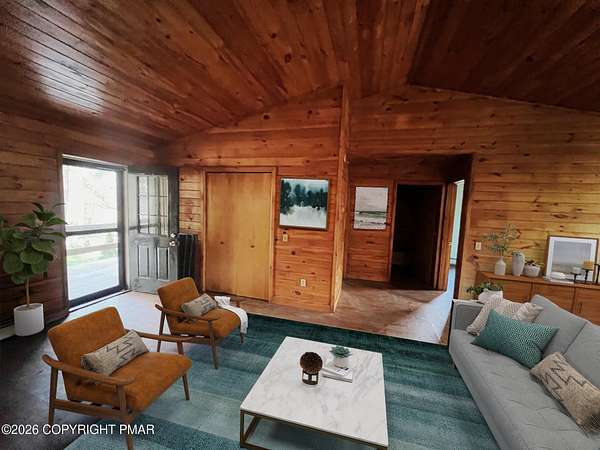 Est $2,284/moWOODED RETREAT! 17.00 acres with private pond! The possibilities are endless for this stunning piece of property just located minutes away from Hills Creek State Park. Cabin boasts 3 bedrooms, 2 full bathrooms, open kitchen/living room with fireplace, rear balcony looking over your pond, basement, and attached walk up garage. Property also features a large detached garage/workshop with 1 bedroom/1 bathroom apartment on the second floor. Properties like this don't come around often and this one won't last long! Square footage and room count does not include the apartment.