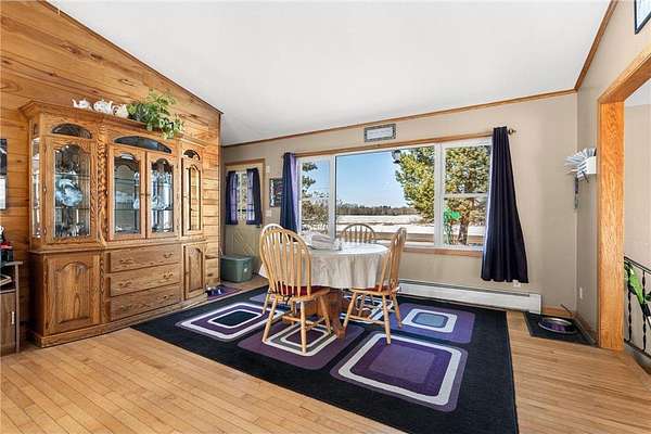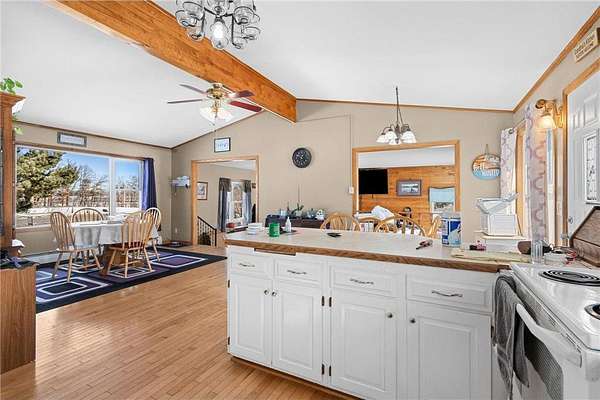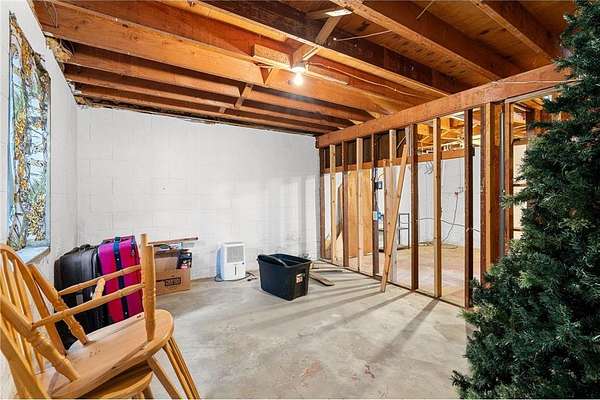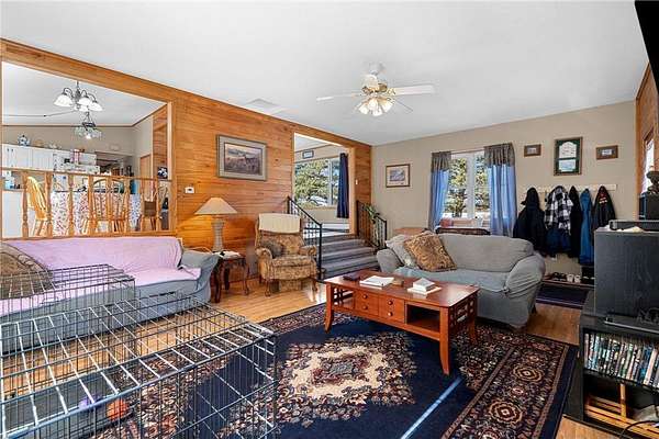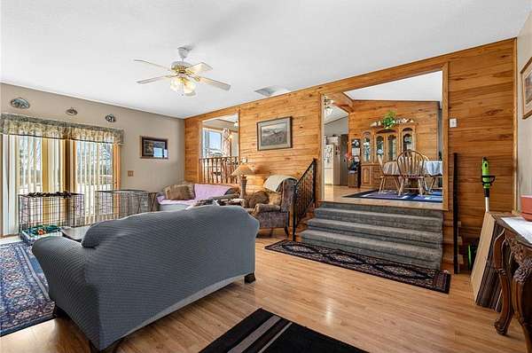 Est $1,545/moSet on nearly 3 acres, this home features one level living with 3 bedrooms, bathroom and kitchen all on the main floor. The large sunken living room has high ceilings, and features wood accent walls for an impressive yet cozy feeling space. In addition to a connected dining room, the open concept kitchen has a sit up counter. Real hardwood flooring thought-out the main level. The basement level offers great storage as well as the potential to add more finished space. 2 car detached garage with a concrete driveway slab.