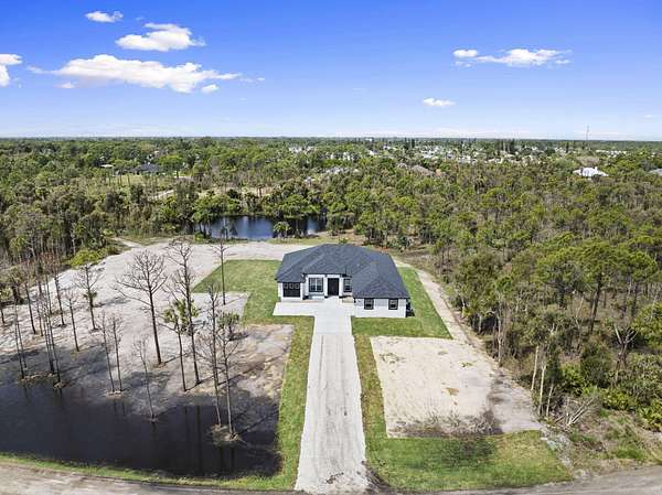 Set on 5 private acres in one of the Treasure Coast's most desirable & growing areas, this brand new residence offers a level of space & flexibility rarely found. At the heart of the property is your own private preserve & pond, creating a natural backdrop that separates the land into two distinct, buildable sections. Each side has its own entrance, allowing for endless possibilities whether it's a guest house, additional residence, or a true multi-structure compound. The home itself is thoughtfully designed with over 2,500 square feet of living space, 4 bedrooms, and 3 bathrooms. Clean, modern finishes, an open layout, and seamless indoor-outdoor flow make it ideal for both everyday living & entertaining. Built with concrete block construction, impact glass, & energy efficient, it offers long term durability & peace of mind. Beyond the home, the land becomes the feature. There is room to create anything from a resort style pool & cabanas to garages, workshops, & space for all your toys. Properties like this don't come up often. It's more than just a home, it's the opportunity to design your own private estate with room to grow.