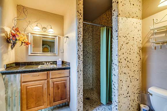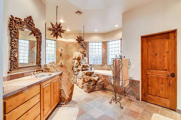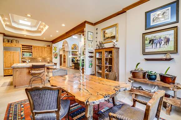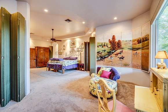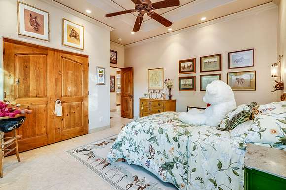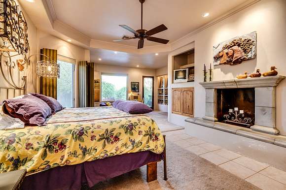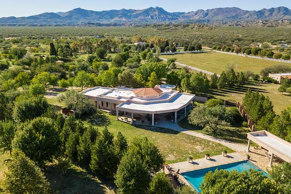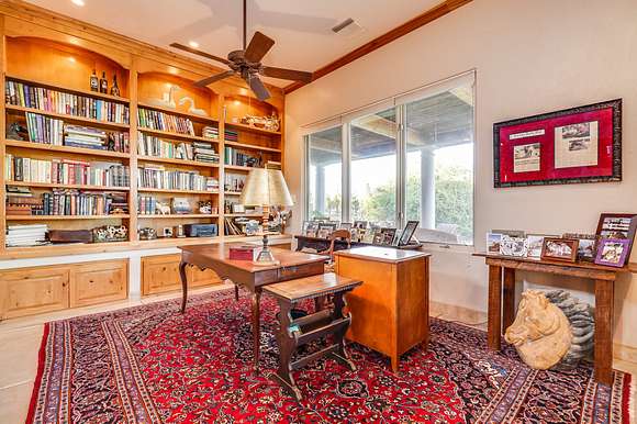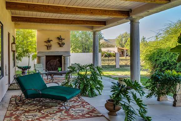 The spacious Mediterranean Ranch style, Main Residence (4525 sq. ft.) features a courtyard in front and an extensive ramada-style porch arbor pool area in the back, both shaded during portions of the day. Nearby, through the trees, are 2 attractive guest accommodations (1800 sq. ft.) and a Foreman's cottage (500 sq. ft.) attached to the Main Residence's hay barn.