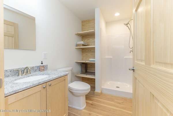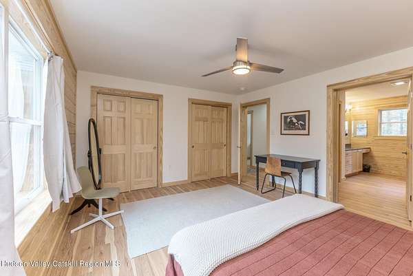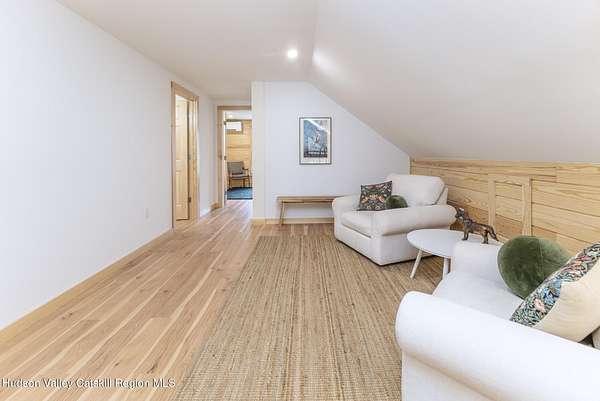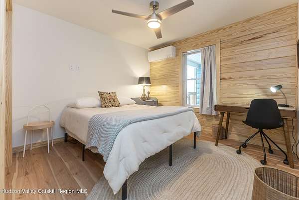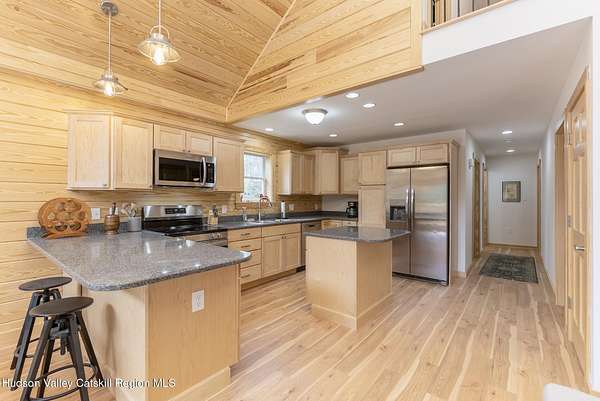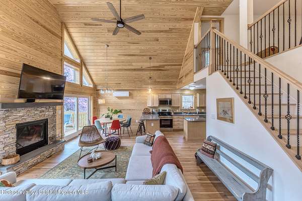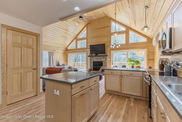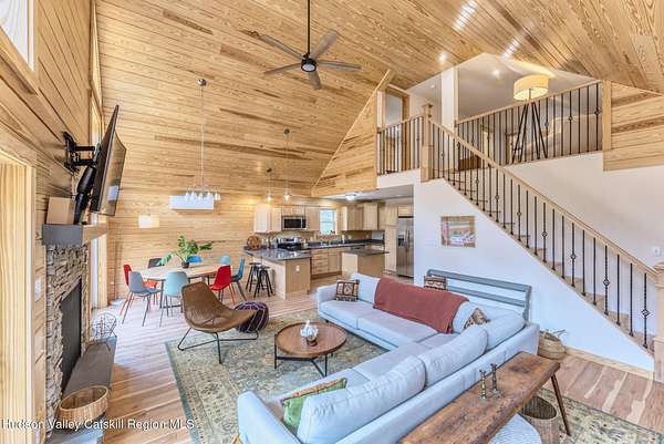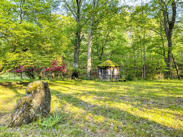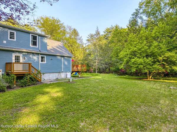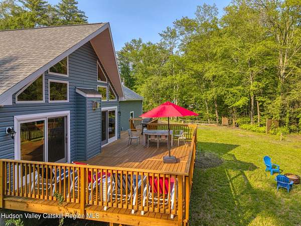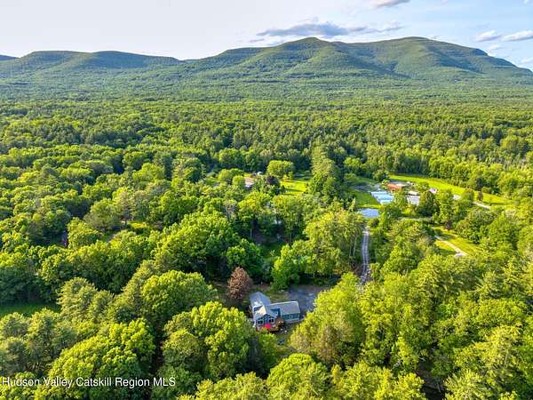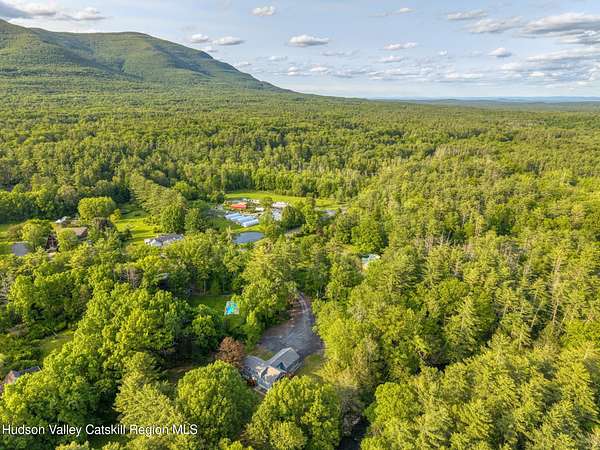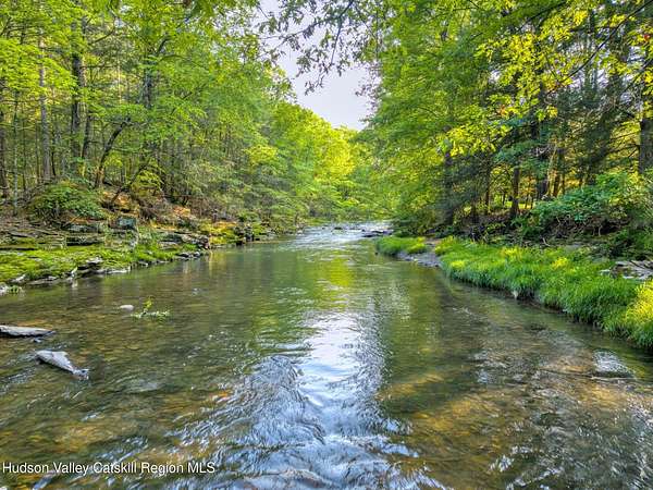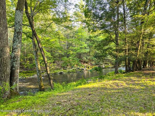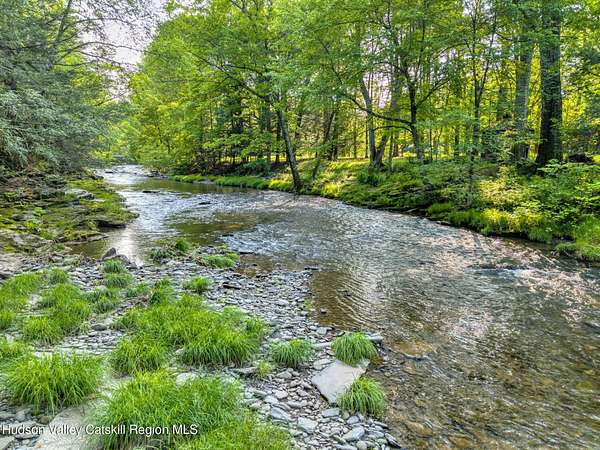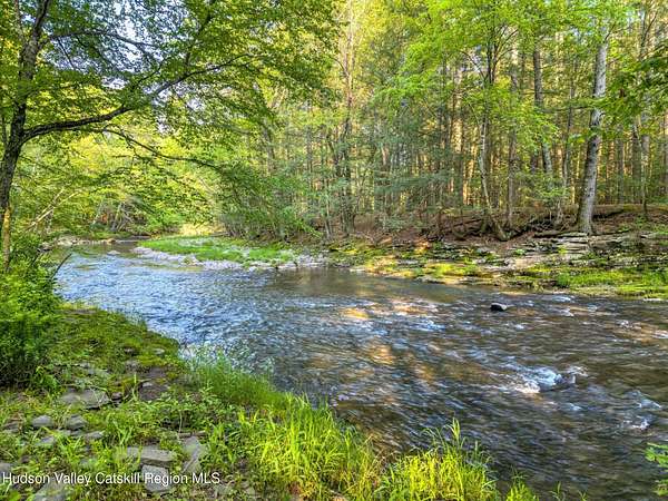 Discover modern living at its finest with this newly built contemporary home, perfectly nestled on 2 private acres along the enchanting Sawkill Creek in Woodstock. Designed with both style and practicality in mind, this property seamlessly blends sleek modern amenities with the natural beauty of its surroundings. Built above the floodplain in accordance with FEMA standards, the home offers peace of mind alongside its luxurious features. Inside, the open-concept design is bathed in natural light, with a gas fireplace anchoring the main living area. The gourmet kitchen, perfect for entertaining, flows effortlessly into the dining and living spaces, with access to a spacious back deck overlooking the serene landscape. The home boasts not one, but two primary suites, each offering spa-like bathrooms and providing comfort and privacy for owners and guests alike. Bluestone walkways and the oversized garage add to the home's thoughtful design and functionality, while town sewer connections ensure modern convenience. Step outside to your own private paradise, where the majestic Sawkill Creek offers not one, but two exceptional swimming holes, including the renowned ''BIG DEEP'' swimming hole just a minutes walk away. Whether you're hoping in for a refreshing swim or relaxing by the water's edge, this property offers an unparalleled connection to nature. A rare gem in the heart of Woodstock, this property is a perfect retreat for those seeking contemporary luxury with the charm of the Hudson Valley. Schedule your private showing today and experience this exceptional home firsthand! House was built per FEMA above flood plain.