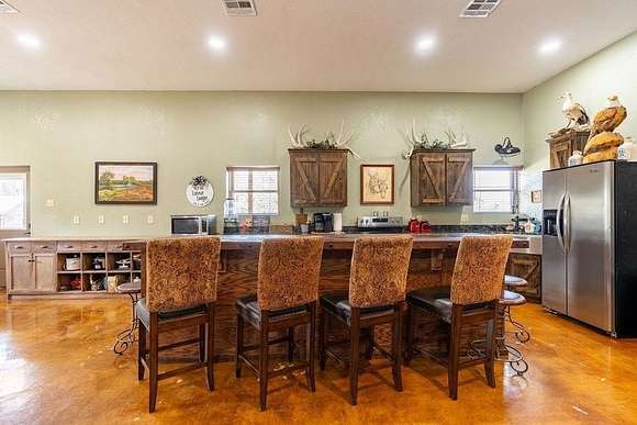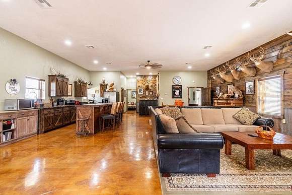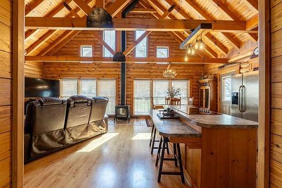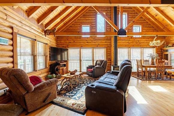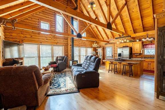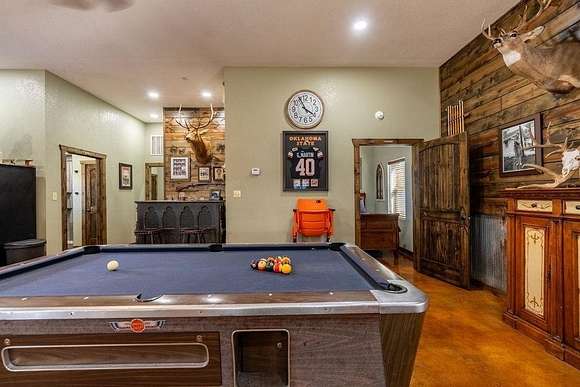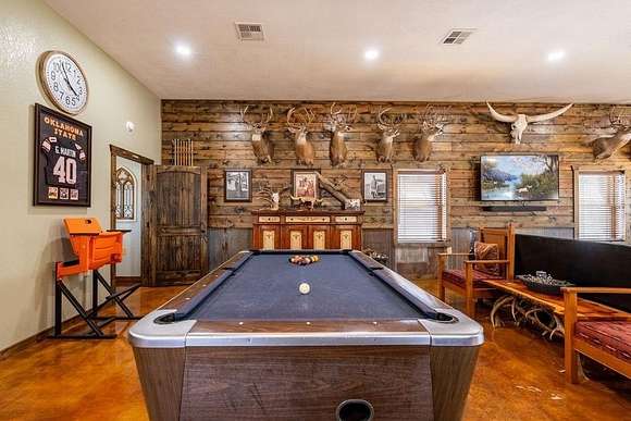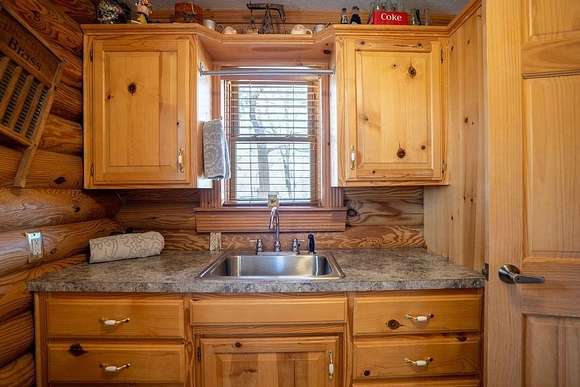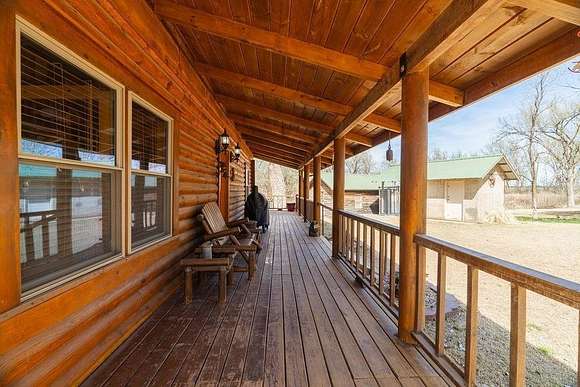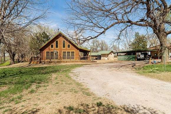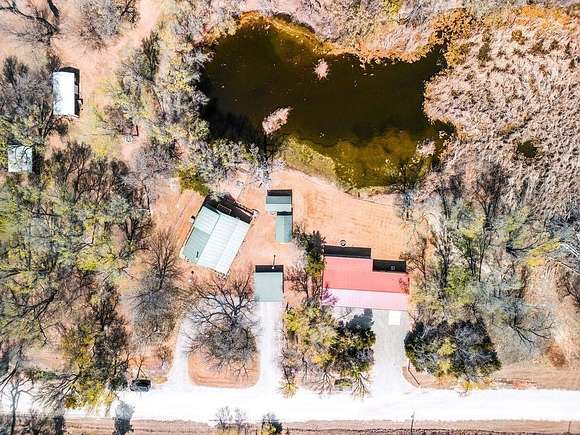 Experience 12 acres of stunning Oklahoma landscape with this beautifully crafted property. The main home is a thoughtfully designed 2 bed, 2.5 bath log cabin built by Gary Shoemaker, offering rustic charm with modern comfort--featuring updated appliances, abundant natural light, and a wrap-around covered porch perfect for enjoying the views. A versatile 30x60 lodge, built in 2021, includes additional bedrooms, a full kitchen, bathroom, and laundry hookups ideal for guests, extended family, or rental potential. It's the perfect space for entertaining or relaxing, complete with a hot tub and outdoor fire pit set right by the pond. Several outbuildings with electrical setup provide ample storage or workshop space. A pond attracts local wildlife, adding to the serene, nature-filled setting. With electric being the only utility, enjoy the benefit of low ongoing costs. A storm shelter is located just steps from the main home for added peace of mind. Private, peaceful, and full of potential this property is your perfect escape. If you'd like to own an amazing property with endless views and possibilities, call me today to schedule your private tour!