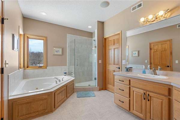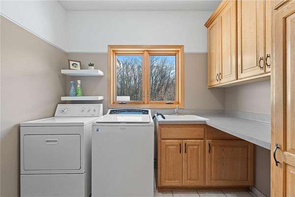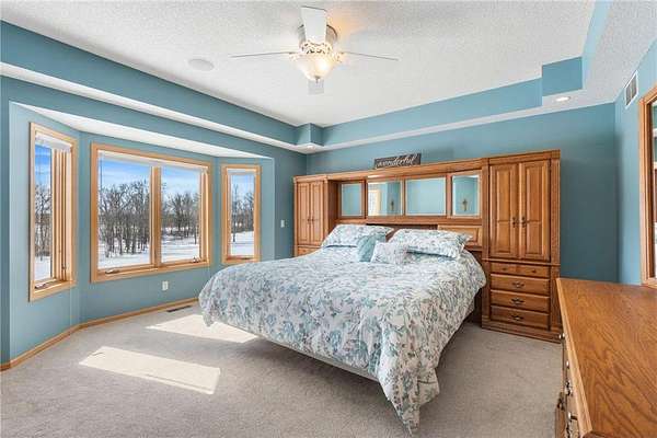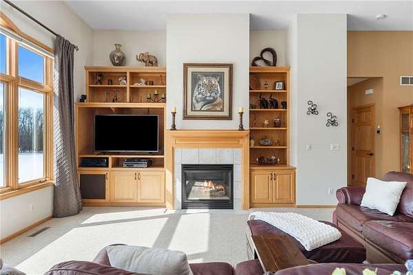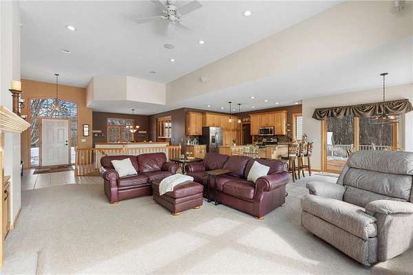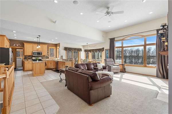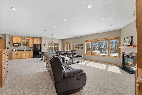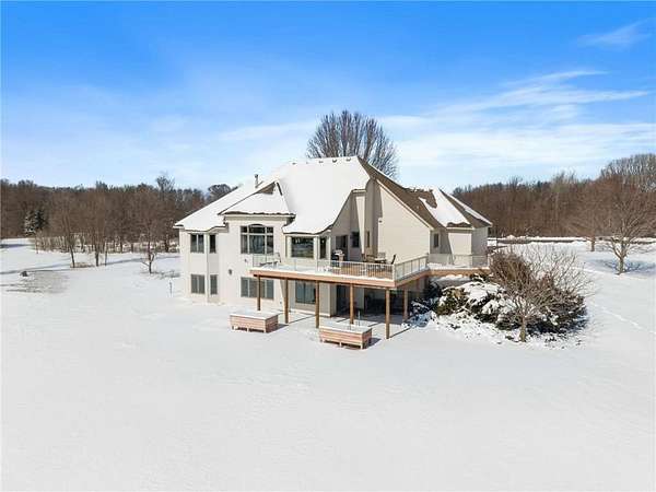 Custom-built rambler offering over 3,200 finished square feet, set on a private 6.33-acre cul-de-sac lot—this home delivers the perfect blend of comfort, space, and thoughtful design. Featuring 4 bedrooms and 3 bathrooms, the main level includes a versatile bedroom currently used as an office. Ceramic tile flooring with Wirsbo in-floor heat extends throughout both the main level and basement, creating warmth and efficiency year-round. A hot water circulation pump ensures instant hot water for added everyday convenience. The owner’s suite serves as a private retreat with a whirlpool tub and heated tile flooring. Built-in surround sound enhances multiple areas of the home, including the living room, owner’s suite, office/bedroom, lower-level living space, and even outside under the deck—perfect for entertaining in every season. The finished lower level includes a dedicated workout room, generous living space, and abundant storage throughout. Car enthusiasts and hobbyists will appreciate the 3-car attached garage along with an additional 26x30 heated and electric-equipped detached garage. Enjoy a beautifully private backyard that you can hunt on, as well with an in-ground sprinkler system, all tucked into a quiet cul-de-sac setting. With acreage, privacy, and high-quality custom features, this home offers a rare opportunity for both luxury and functionality