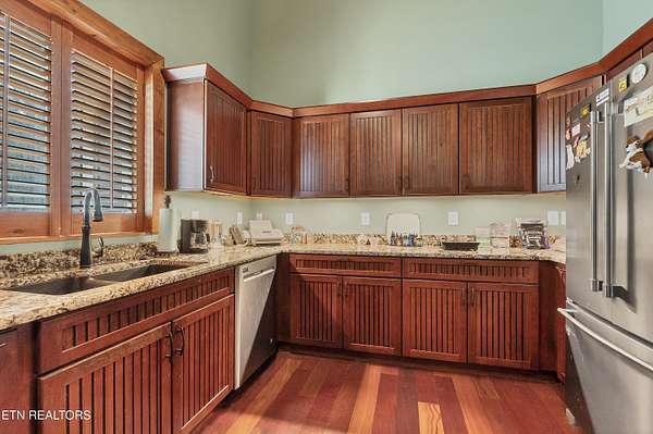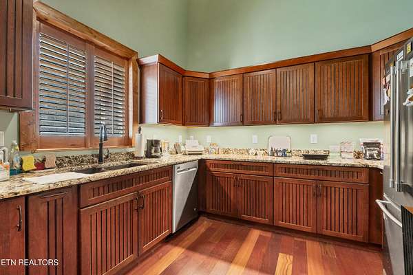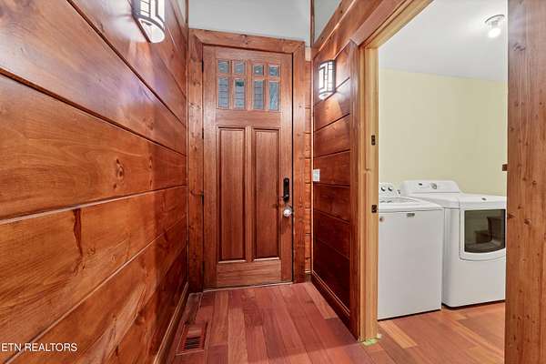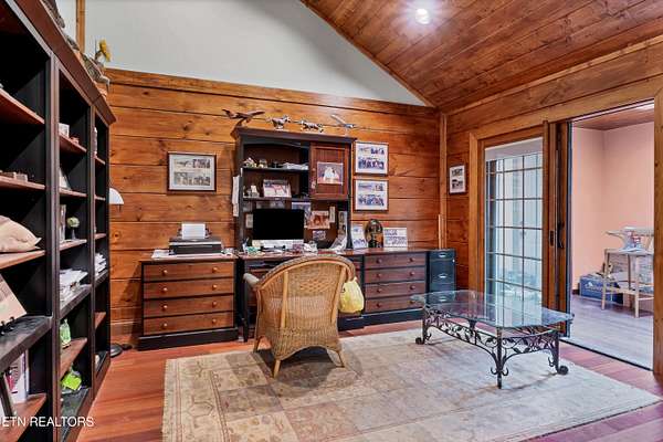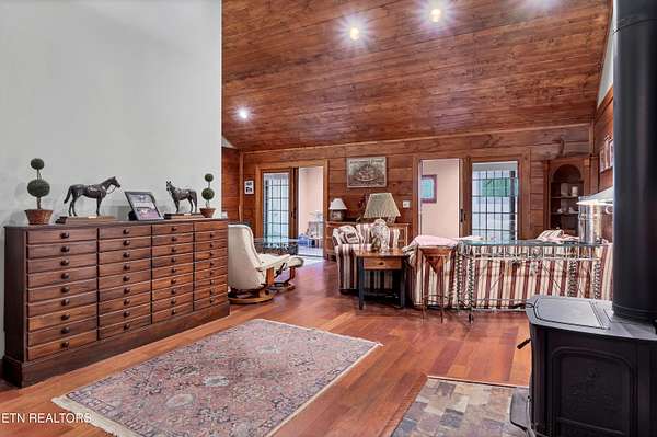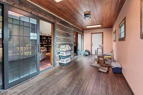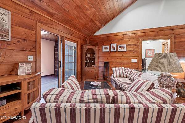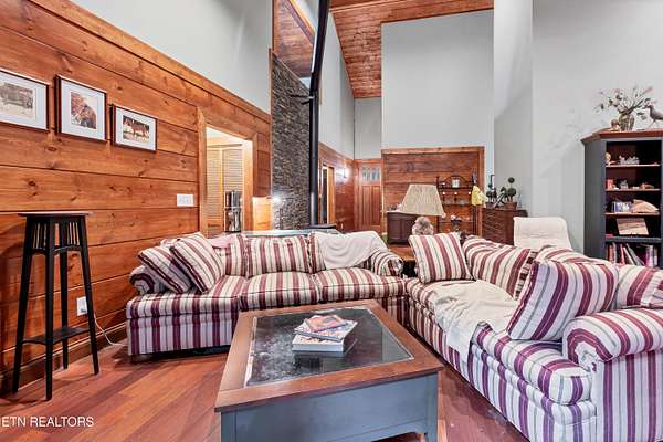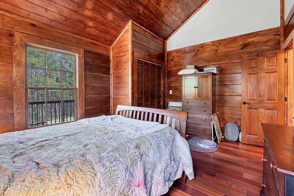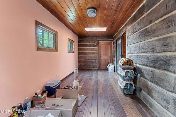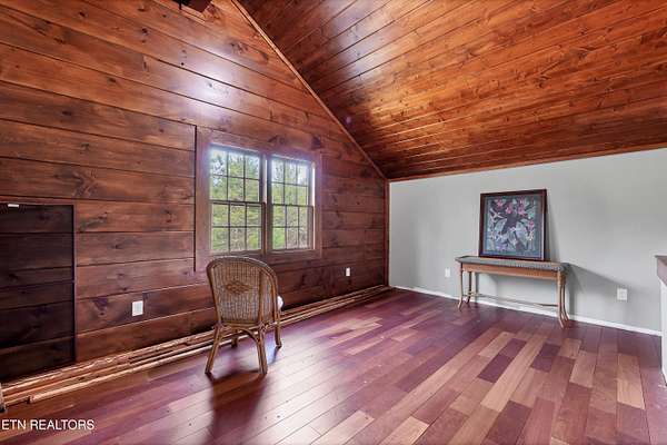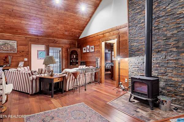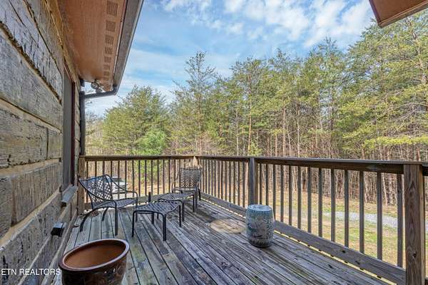 Nestled in the peaceful beauty of Coker Creek and backing directly up to the Cherokee National Forest, this stunning 2-bedroom, 2-bath Old Kentucky Log home offers privacy, craftsmanship, and breathtaking natural surroundings. Surrounded by mature woods, this 2,681 sq ft cabin retreat provides the perfect blend of rustic charm and comfortable living. Inside, you'll find gorgeous cherry hardwood floors throughout and a spacious open living room featuring soaring 26-foot ceilings, creating an impressive yet inviting gathering space. The living area includes a freestanding wood-burning stove and Pella sliding doors with built-in blinds that open to a relaxing sunroom, the perfect place to take in the peaceful wooded views. The kitchen is beautifully appointed with granite countertops, custom cherry wood cabinetry, and all appliances conveying, offering both style and functionality. The primary suite on the main level is a true retreat featuring cherry hardwood floors, vaulted ceilings, a ceiling fan, comfortable sitting area, and a freestanding wood-burning stove for added warmth and ambiance. The suite also offers private access to the sunroom with skylights as well as access to the downstairs bonus area with luxury vinyl plank flooring, ideal for a storm retreat or flexible space, complete with built-in twin beds and cabinetry. The ensuite bathroom features a double vanity and tiled walk-in shower. Also on the main level is a spacious second bedroom with vaulted ceiling, an additional full bath, and a laundry area with washer and dryer remaining, along with convenient access to the basement one-car garage. Upstairs, the home offers two separate living areas providing wonderful flexibility. One space could easily serve as a third bedroom, hobby room, or craft area and even includes its own small loft area. The second loft overlooks the living room, making it an ideal spot for a home office, reading nook, or quiet sitting area. The exterior showcases the distinctive Old Kentucky Log design, constructed of cement reinforced with rebar, making the home exceptionally solid and durable. The home also features spray foam insulation, providing excellent energy efficiency and economical heating and cooling. If you've been searching for a private mountain-style cabin surrounded by nature, yet offering spacious living and thoughtful craftsmanship, this one-of-a-kind Coker Creek retreat is truly a rare opportunity. All information provided in this listing is deemed reliable but is not guaranteed. Information has been obtained from the seller and/or third -party sources. Listing broker and agent make no representations or warranties as to the accuracy or completeness of the information provided. Buyers and their agents are advised to conduct their own independent due diligence regarding the entire property, including but not limited to: septic systems, age and condition of mechanical systems and roof, square footage, lot size, surveys, zoning, permits, taxes, and any other material facts. Buyer is responsible for verifying all information to their satisfaction. Listing agent has no ownership interest in the property.