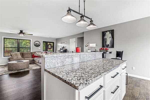 The beautifully crafted home boasts an open concept layout, cozy fireplace, large kitchen island, modern flooring, and a main living suite designed for comfort. Store it all in the 30x30 attached garage or the massive 5,000 sq ft heated equipment shop--perfect for RVs, trailers, tractors, and more.