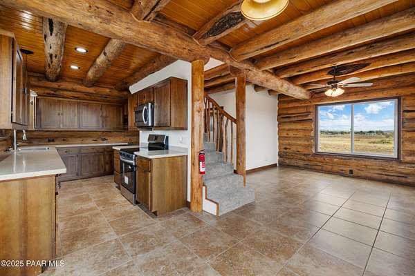 SELLER WILL CONTRUBUTE UP TO $15k TOWARDS BUYER CLOSING COST WITH AN ACCEPTABLE OFFER. Experience Log Cabin Living at Its Finest!Step into your dream home with this beautifully updated two-story log cabin, perfectly nestled on over 2 acres of open land. Relax on the charming covered front porch and take in breathtaking sunsets and panoramic views of the distant mountains.This 3-bedroom, 2-bath home features a versatile bonus room and has been completely renovated from top to bottom. Enjoy peace of mind with a brand-new roof, upgraded cabinets, countertops, flooring, interior and exterior paint, appliances, bathrooms, solid wood doors (with stylish barn door closets), plumbing fixtures, and lighting throughout--every detail has been thoughtfully considered.With plenty of space to grow, this property offers endless possibilities. Whether you dream of building a barn, garage, arena, or simply want space for your animals and outdoor toys, this property has it all. Conveniently located on a paved road, it combines rustic charm with modern comfort--just like a brand-new home, ready for you to move in and make it your own.