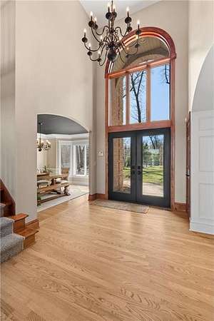 Stately and timeless, this full brick-front estate is gracefully set on 2.6 park-like acres with premier frontage on Comfort Lake a full recreational lake offering year-round enjoyment. Surrounded by mature trees and lush perennials, the setting is both private and picturesque, creating a true retreat.