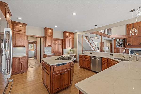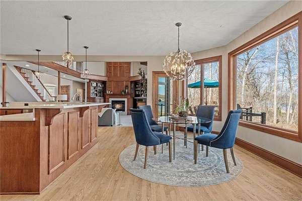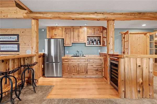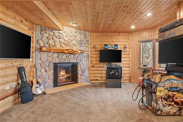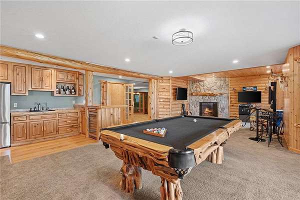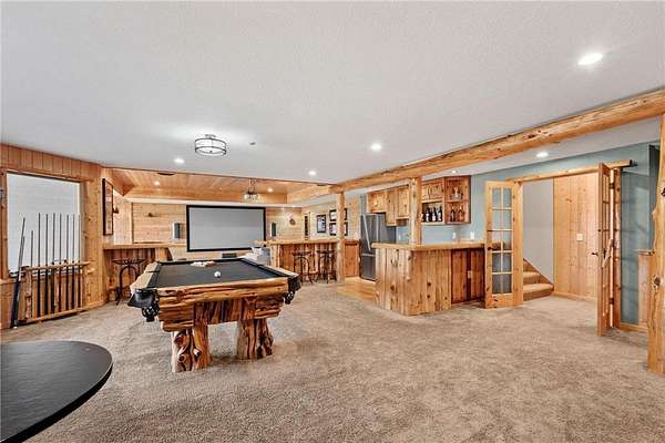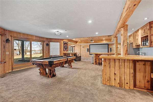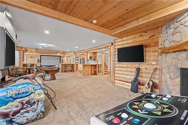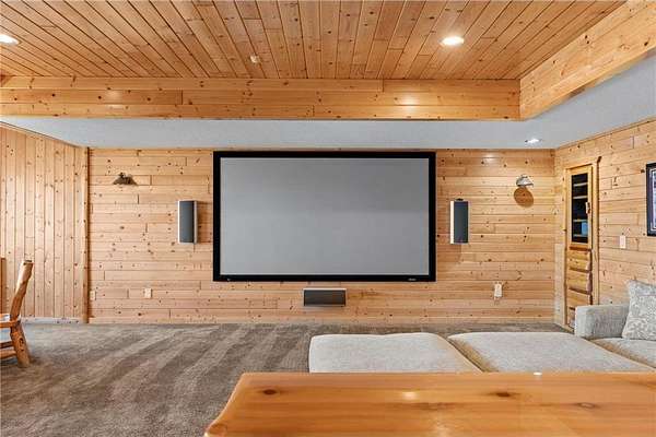 The walkout lower level delivers a true lodge feeling with Yellowstone wood, rich wood finishes create a Northwoods retreat feel, anchored by a full bar and expansive gathering spaces ideal for hosting. A dedicated theater area elevates the experience, offering the perfect setting for movie nights or game-day events. Whether entertaining a crowd or enjoying a quiet evening, this level offers a completely distinct and inviting atmosphere.