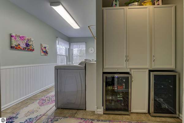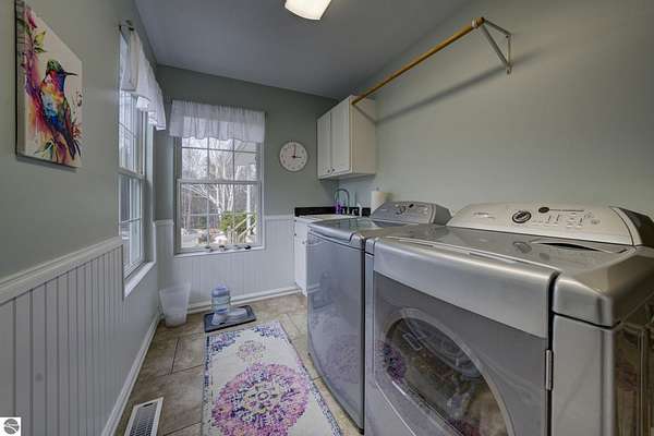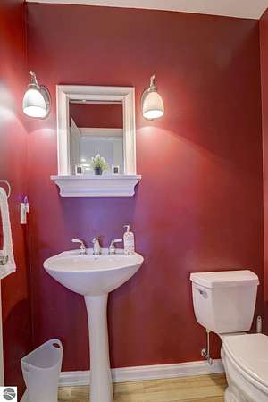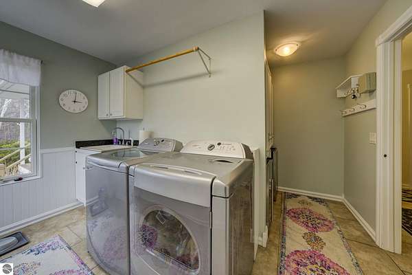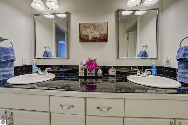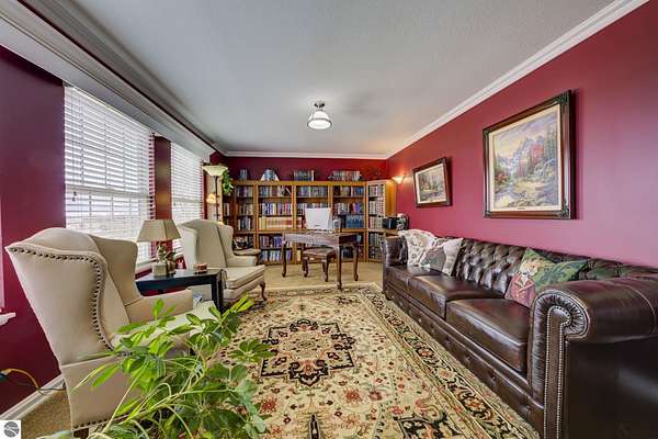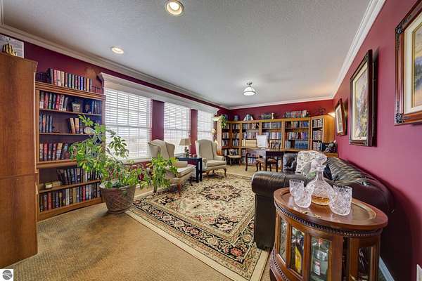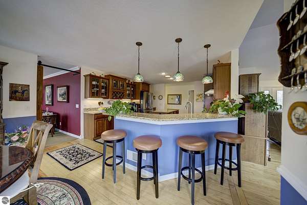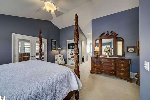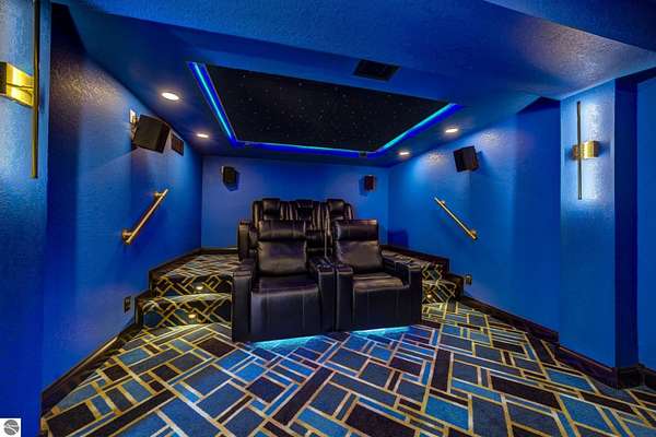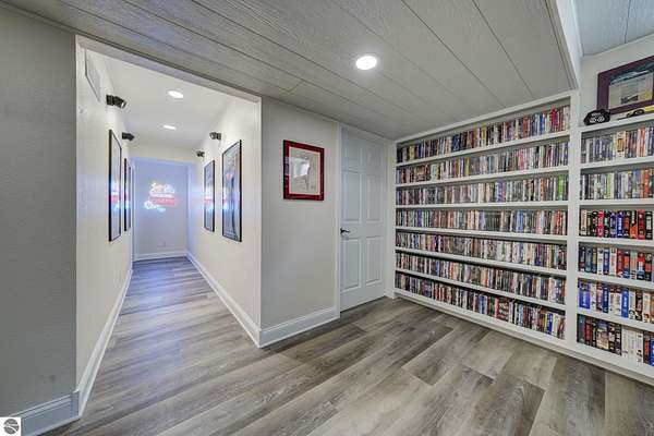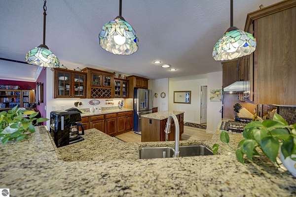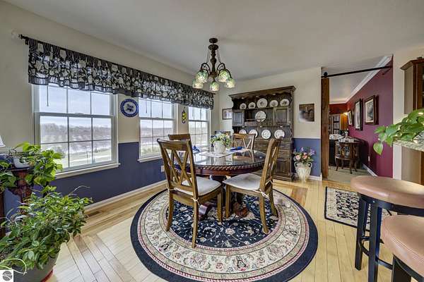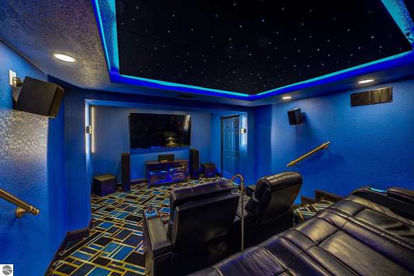 Set on 5.19 private acres in the heart of Leelanau County, this beautifully maintained 3-bedroom, 2.5-bath home offers the perfect blend of comfort, space, and lifestyle. Surrounded by a peaceful blend of mature deciduous trees and rolling countryside, this property provides both privacy and convenience just north of Suttons Bay. The main level features well-defined living spaces that provide both comfort and functionality, with maple hardwood floors throughout the kitchen, living, and dining areas. The spacious kitchen is designed for both everyday living and entertaining, complete with granite countertops, newer appliances, and a large center island. A library or office on the main floor offers a quiet and functional work-from-home space, while the remodeled laundry room includes built-in beverage refrigerators for added convenience. Multiple living areas—including a cozy fireplace living room and a finished lower level with home theater and recreation space—offer flexibility for socializing, relaxing, reading, crafting, or movie nights. The main floor primary suite serves as a private retreat with a soaking tub, double-head tile shower, and two walk-in closets, and also offers direct access to the hot tub room, creating a true spa-like experience. The dedicated hot tub room provides year-round relaxation.This home has been thoughtfully updated with newer appliances, a newer roof (approximately 3 years), and numerous improvements throughout, along with the added benefit of a whole-home generator for peace of mind. Outdoor features include beautifully landscaped grounds, garden areas, and a fenced vegetable garden with raised beds, creating an ideal setting to enjoy Northern Michigan living. A rare opportunity to own a spacious, amenity-rich home on acreage in a highly desirable Leelanau location, offering privacy, versatility, and room to live, relax, and entertain. Furnishings and equipment for the movie room are included in the sale.