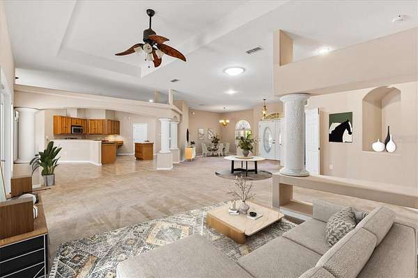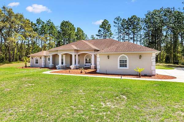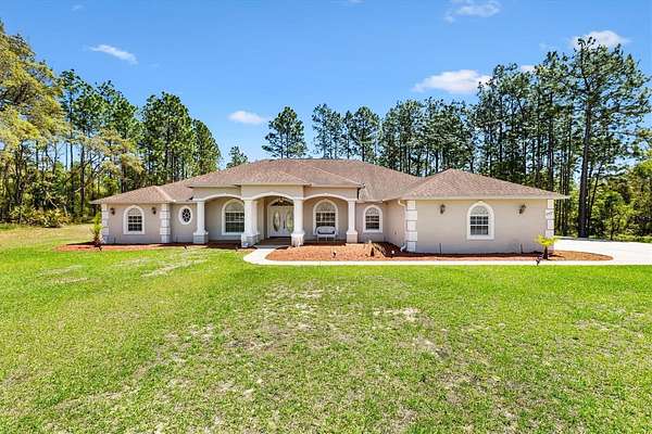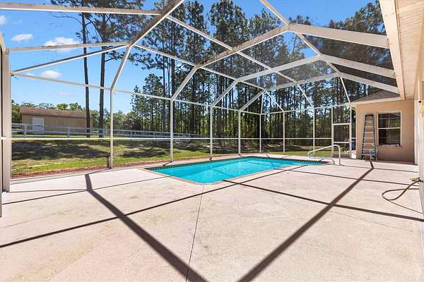 What a rare and enchanting opportunity for equestrian enthusiasts seeking the perfect blend of country charm and modern comfort, ideally situated in BEVERLY HILLS within the sought-after community of Pine Ridge Estates, and conveniently located within reach of both Tampa and Ocala. Nestled on 2.75 beautifully maintained acres, this captivating mini horse farm invites you to embrace a peaceful, pastoral lifestyle without sacrificing convenience. The heart of the property is a thoughtfully designed one-owner home, built in 2010 with CONCRETE/BLOCK/STUCCO construction, offering 3,436 square feet of living space under air. Inside, elegance meets comfort with soaring 10-foot tray ceilings, enhanced by solar accents and soft recessed lighting that create a warm and inviting ambiance throughout. Every detail has been carefully considered to provide both style and function. Step outside and discover your own private oasis, where a HEATED SALTWATER POOL shimmers beneath a screened birdcage, offering year-round enjoyment powered by an UNDERGROUND 500-gallon PROPANE TANK that also services the GAS RANGE. Whether you're entertaining guests or enjoying a quiet Florida evening, this outdoor retreat is nothing short of magical. Equestrian dreams come to life with a fully FENCED PASTURE measuring approximately 125 by 149 feet, complete with a charming 2 STALL BARN featuring convenient walkout access. The acreage provides ample space for your horses to roam, while still maintaining a manageable footprint for ease of care. A dedicated WELL supports the irrigation system, while the home itself benefits from CITY WATER, giving you the best of both worlds. Additional Features include a spacious 3 CAR GARAGE, SECURITY ALARM SYSTEM for peace of mind, and a luxurious 2 PERSON NORDIC INDOOR SPA, perfect for unwinding after a day spent outdoors. This is more than just a home, it’s a lifestyle filled with serenity, beauty, and the simple pleasures of country living. Opportunities like this are few and far between, so don’t let this one slip away. Act now and make this enchanting equestrian retreat your very own.