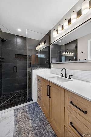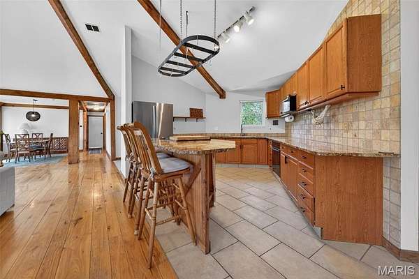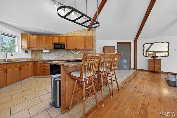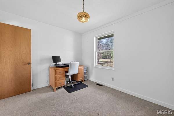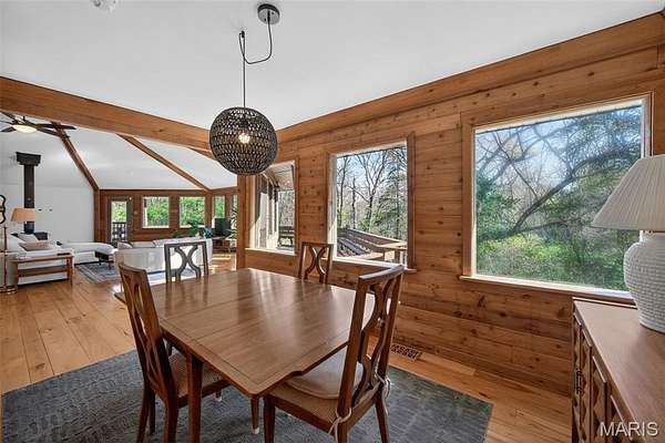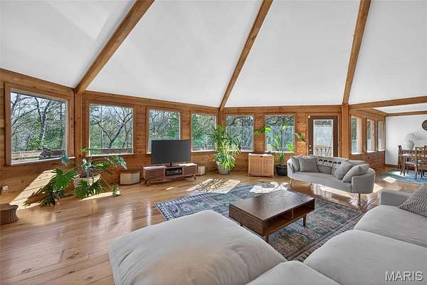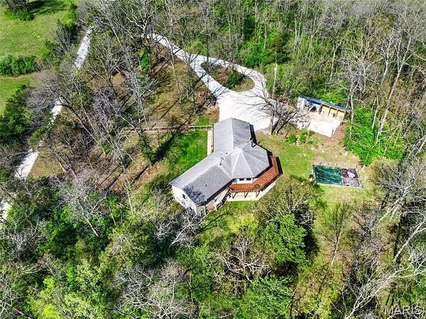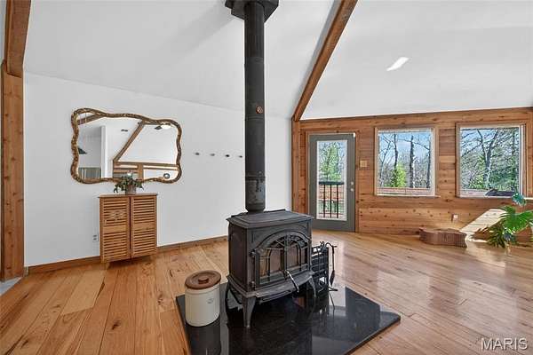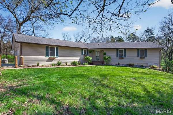 Amazing, spacious ranch home on 5+ acres just minutes from Hwy 44 at the Pacific exit—offering the perfect blend of privacy, functionality, and convenience while keeping you close to St. Louis attractions. Inside, you’ll find custom-milled hickory floors sourced from the property and soaring cathedral ceilings. The semi-octagon Great Room features a stunning wall of windows with breathtaking views and a cozy wood-burning stove/fireplace, creating the perfect space to gather and unwind. The kitchen is open to the Great Room and features granite countertops, custom cabinetry, and a new kitchen sink—ideal for both everyday living and entertaining. The main-floor primary suite includes a newly updated bathroom suite, along with a spacious second bedroom, an additional full hall bath, and a dining area completing the main level. The spacious, finished walkout lower level offers a large family room, two additional bedrooms, and a beautifully updated full bath.