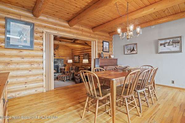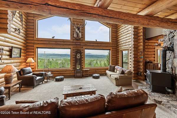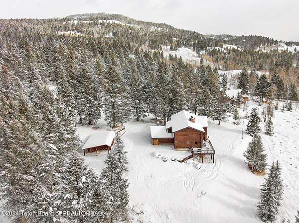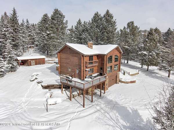 Settled on 1.52 acres in Moran, Wyoming, this four-bedroom, two-bathroom log cabin offers the best of both worlds -- the peace and quiet of true mountain living, with some of the most remarkable wilderness in North America right outside your door. Sweeping, unobstructed views of the Buffalo Fork River Valley and the iconic ridgeline of Mount Leidy greet you each morning, a reminder of just how extraordinary this corner of Wyoming really is. Whether your ideal day means taking in the views from your living room, taking a scenic drive through Grand Teton National Park, or venturing out to explore the rivers, trails, and wide-open spaces of the Greater Yellowstone Ecosystem, this property puts it all within easy reach -- then welcomes you back to warmth, space, and stillness... ...at the end of it. The large attached garage and workshop offer exceptional practicality for hobbyists, outdoor enthusiasts, and families alike, while a separate storage shed ensures there's room for everything life here requires. With four bedrooms and a generous, flexible floor plan, there's space to host family, settle in long-term, or simply spread out and breathe. Properties that combine this much acreage, these views, and this level of access to Wyoming's most beloved landscapes offer a great combination. This is a place to slow down, soak it in, and never want to leave.