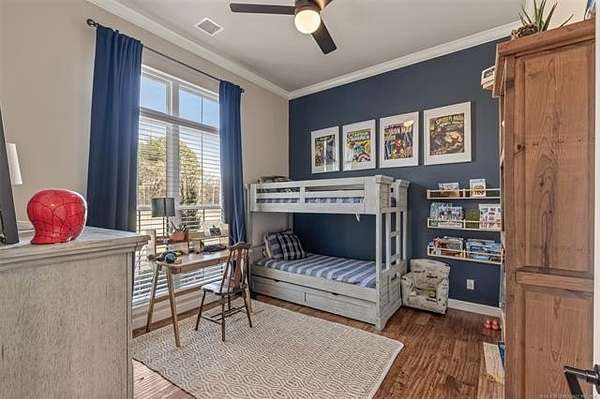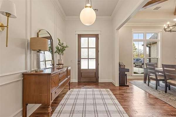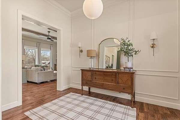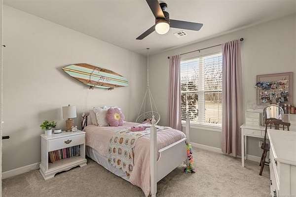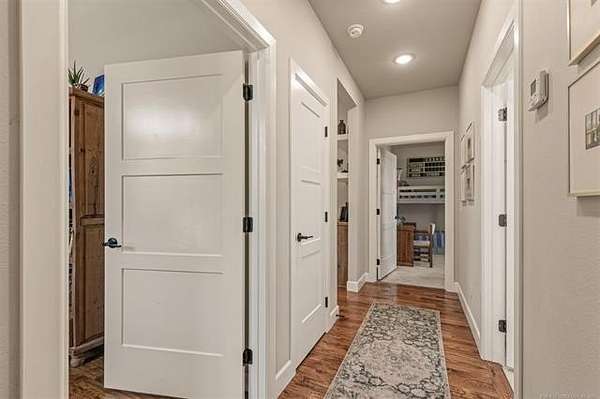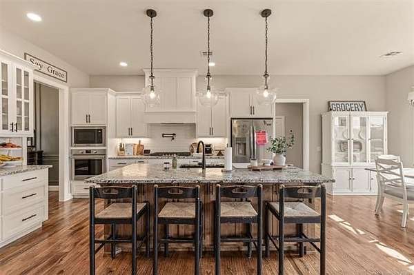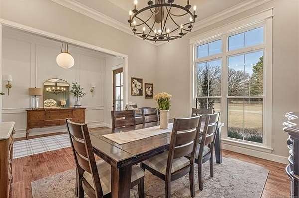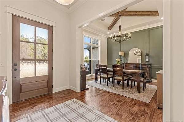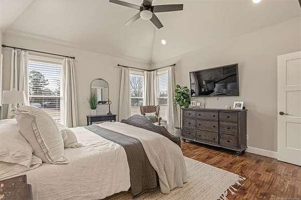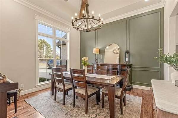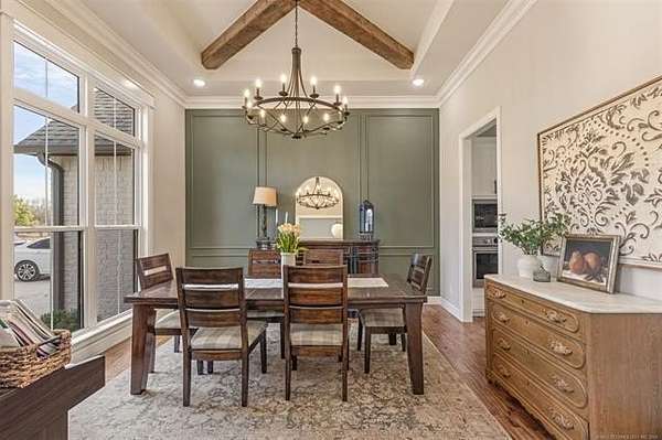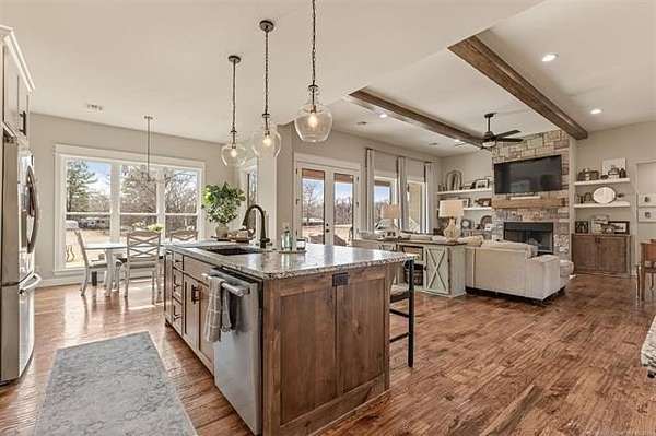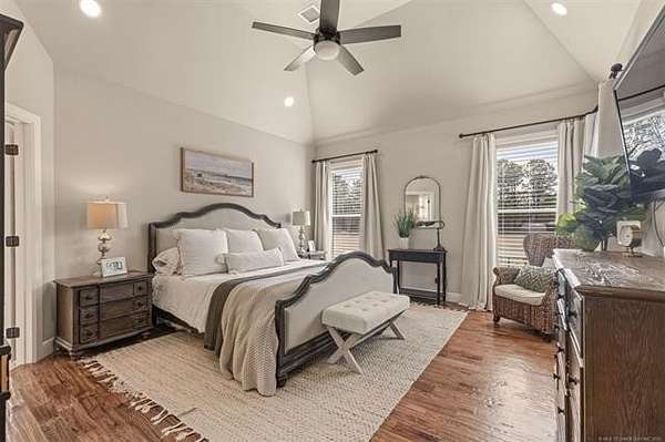 Welcome to this stunning, like-new modern farmhouse, custom-built on a private 3.65 acre corner lot in the desirable Sandhill area of Coweta. Thoughtfully designed and meticulously crafted for a forever home, this 5-bedroom, 4-bathroom residence offers the perfectblend of luxury, functionality, and peaceful country living - just 30 minutes from downtown Tulsa. Step inside to hand-scraped solidoak floors that flow throughout the open-concept living spaces. The gourmet kitchen is a chef's dream, featuring Sedona leatheredgranite countertops, soft-close cabinetry with under-cabinet lighting, a gas range with pot filler, and beautiful hickory-stained accentbeams that add warmth and character. A formal dining area and expansive living room with a wood-burning fireplace creates aninviting space for family gatherings and entertaining. The primary suite is a true retreat with a spa-like bathroom complete withaccent lighting and heated towel rack. Additional bedrooms offer flexibility for growth, home office or guests and premium finisheselevate every detail. Outside the appeal is undeniable. An attached 3-car garage is fully insulated with hot/cold water - ideal for aworkshop or hobbies. Fully fenced grounds, where wildlife frequently visits, provides room for play, gardening, animals, or simply unwinding in nature. Built with quality and efficiency in mind, this home delivers low maintenance and comfort. New construction onacreage is rare, this exceptional property won't last long. Schedule your private tour today and experience the lifestyle you've beendreaming of.