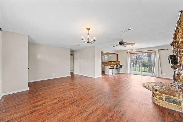 Est $2,322/moBeautiful opportunity on 6 acres with a 3 bedroom, 2 bath brick home to make your own! Home has large front yard for all of your favorite holiday decorations. Fence and large, shade providing trees in the backyard is perfect for the little ones to play and run around in. Inside of the home has a cozy, rustic feel to with a stone chimney at the heart of the living room and large sliding glass doors to really enjoy the view of your acreage. Home also has a walk in laundry room with built in cabinets for plenty of storage. A must see!