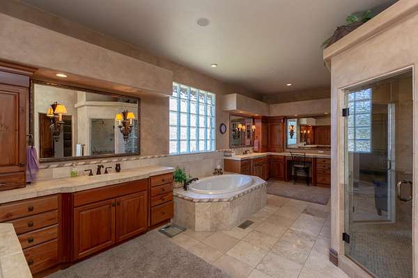 Beautiful Custom built home, built in 2004 by Monument Homes situated on 2.4 acres in desirable North area. 4310 sq ft featuring two master suites plus a loft (548 sq ft) as a non conforming third bedroom with a 3/4 bath.. You are going to love the oversize primary suite with luxurious bath with a steam shower, see thru fireplace and private entrance to the patio. You'll be amazed at the 2-story windows providing natural light, stunning views and beauty of the property. This property shines outdoors with a beautiful pond, mature landscaping, multiple inviting patio spaces=ideal for entertaining or relaxing in a peaceful setting. Large 3 car garage with extra storage area, a barn adds flexibility for hobbies or storage, so private yet close to all amenities. High end craftsmanship and quality through-out this home. This is a must see!