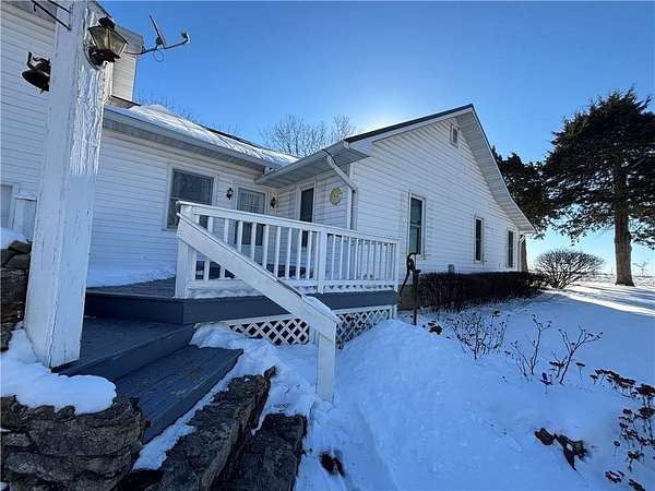 Est $3,015/moWell-maintained 4 BR home on 80 acres, M/L with pond, shop/garage with concrete floor, machinery shed, barn and horse stall barn. Central heat/air, front sunroom with heat/air currently used as office. Addition has vaulted ceiling in DR. Rear sunroom for your pleasure and entertaining. Partial utility bsmt. Mature shade trees and hard surface road with easy access to Hwy 69.