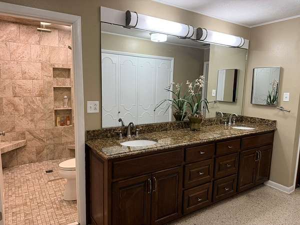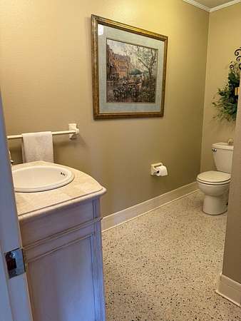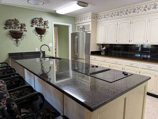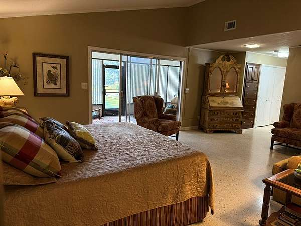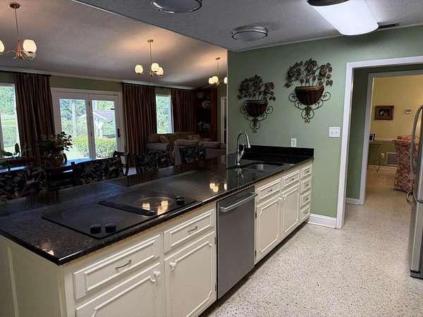 Lake House with Open Floor plan! Lake views from almost every room; family room, w/high ceiling; Formal Dining Rm, Beautiful kitchen with spacious Pantry, Coffee bar, granite counter tops; Redone few years ago. Main house Windows were replaced w/dbl pane in 2013. Private Master Suite with Lg. Sun-room and Lake views. Sunroom has mini-split wall unit. Master Bdrm has sitting area and opens to Master Bath which was totally gutted in 2020 + granite Dbl vanity. There are 3 guest bedrooms; one is being used as an office/den temporarily. The entire back yard has beautiful views with the Lake in the background. Flooring is Terrazzo, Consists of marble chips set in cement or epoxy resin that is poured & ground smooth when dry... Superior strength and beauty. All windows in larger part of house were replaced with double pane in 2013 by Cook Glass and also the hallway glass along the guest bedrooms was replaced. The 3 guest bedrooms windows were not replaced nor sunroom.