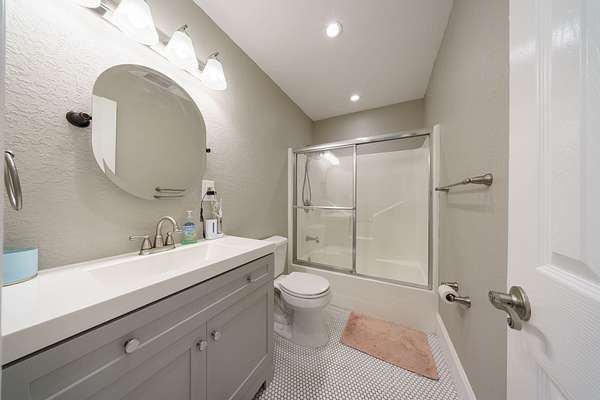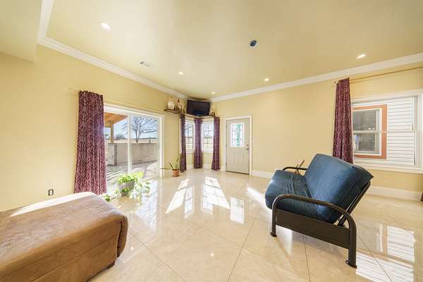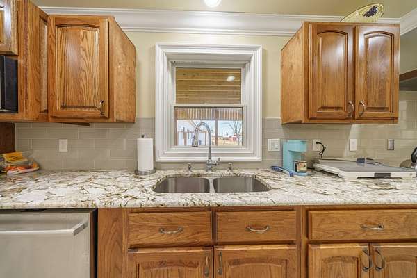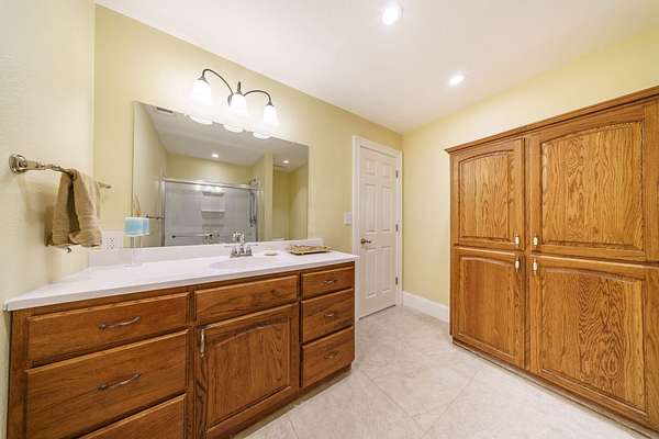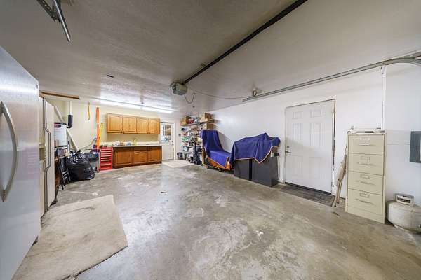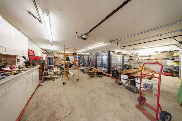 The newly renovated primary suite is a true retreat with a luxurious bath and oversized custom walk-in closet. This level also provides access to a covered patio, storm shelter, and a single-car garage with built-in shelving.