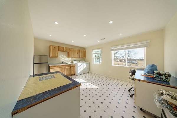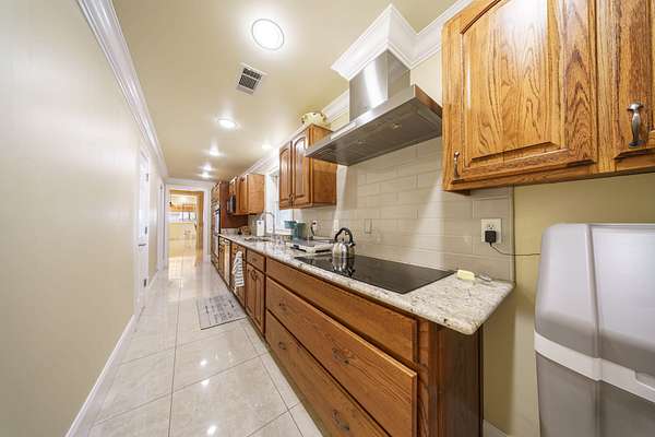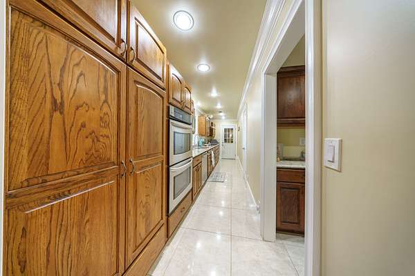 In addition, there is a secondary gallery kitchen featuring stainless steel appliances and granite countertops, currently being used as the primary kitchen. Located directly off the garage, this space provides exceptional convenience for everyday living. Off this kitchen is a half bath and a laundry room with washer and dryer, making this portion of the home highly functional and practical.