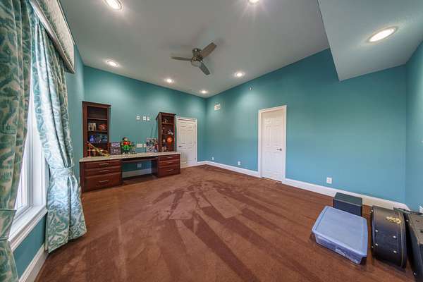 Three guest bedrooms-two with custom built-in desks and entertainment centers-plus two full baths provide ample space. A lounge area and full-length balcony offer sweeping views and multiple areas to relax and unwind.