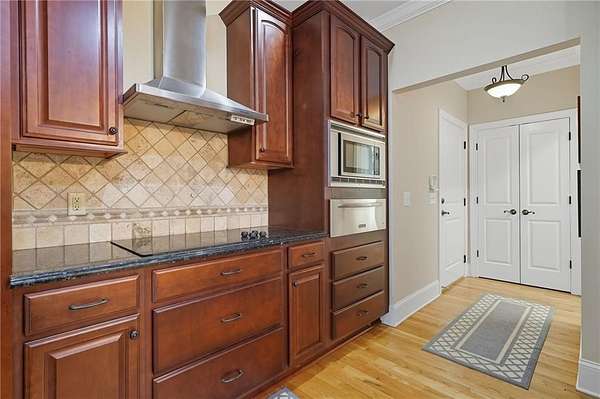 - Dishwasher, Disposal, Double Oven, Electric Cooktop, Microwave, Range Hood, Refrigerator, Trash Compactor