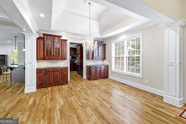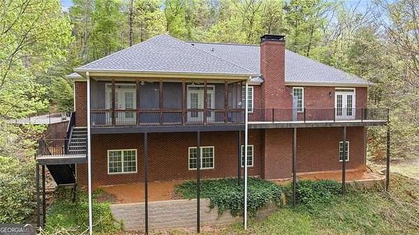 Creekfront property in the heart of North Georgia, this stunning mountain home sits on 3.78 private acres, offering the rare combination of water frontage, usable land, and peaceful privacy. This North Georgia mountain home is RV-friendly with space for a full-size RV just steps from the home-an uncommon and highly desirable feature. Tucked away on a wooded lot, this beautifully crafted 4-sided brick home features a spacious split bedroom floor plan with an open concept layout, additionally, coffered ceiling in the great room, formal dining area with tray ceilings, and a large covered deck that is both screened and open-air-perfect for enjoying the sights and sounds of Turner Branch, a year-round creek that runs along the entire back of the property and Turners Creek runs through the property on the left The kitchen offers cherry wood cabinetry, granite countertops, and premium appliances including double ovens, warming drawer, electric range with vent hood, dishwasher, disposal, and trash compactor. There is ample space for both a full-size dining table and additional seating at the peninsula. The primary suite features tray ceilings, private access to the deck, and a spacious ensuite with double vanities, soaking tub, separate shower, and walk-in closet. The unfinished basement (over 2,100 sq ft) includes a finished full bath, fireplace, and two separate entrances-one with direct access to parking-making it ideal for future expansion, multi-generational living, or a private guest suite. With 12-foot ceilings, the space is perfectly suited for a game room, home gym, or even a golf simulator. Additional highlights include a brand new roof, whole-home air purification system, workshop area, abundant storage, and a private path leading to the creek. Located just minutes from downtown Cleveland, local wineries, and U.S. National Forest access, this property offers the perfect balance of privacy, functionality, and North Georgia mountain lifestyle. Opportunities like this are rare.