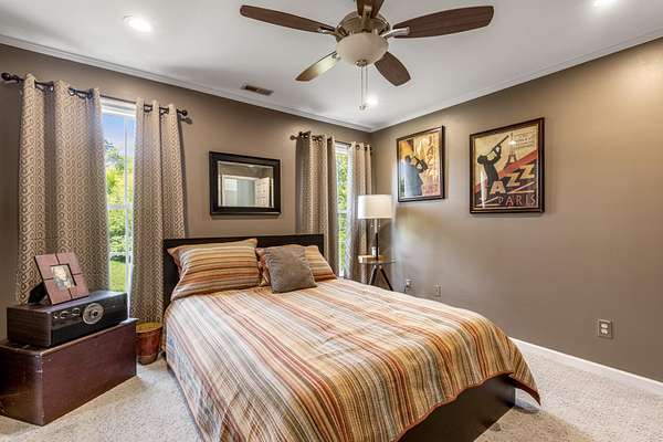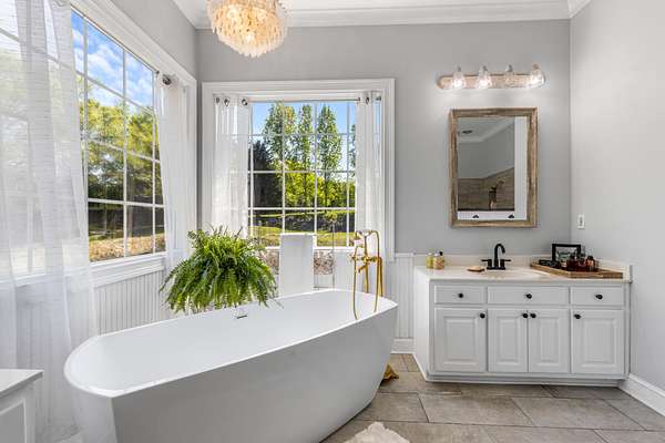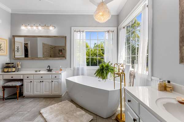 This home offers 4 bedrooms and 3.5 baths, including a luxurious primary suite with vaulted ceilings, dual walk-in closets, and a spa-like bathroom complete with soaking tub, separate shower, and double vanities. Each additional bedroom is generously sized, with en suite access, and an upstairs bonus room with closet and sink provides flexibility as a potential fourth bedroom, guest suite, or secondary living space.