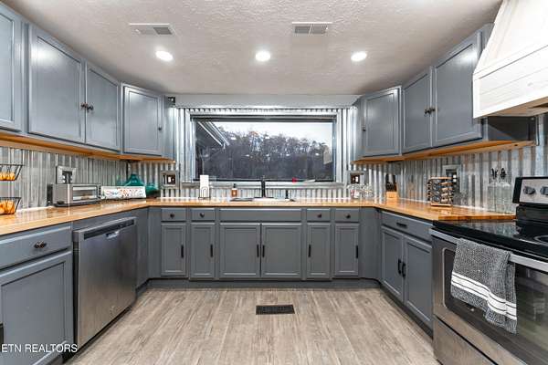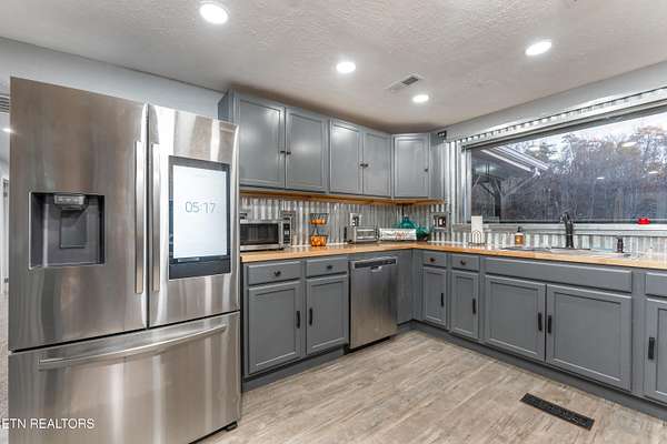 Escape to your own private haven just minutes from Norris Lake! Set on over 4 acres of serene, unrestricted land, this beautifully refreshed 5-bedroom, 3-bath home spans 2,782 sq. ft. and offers the perfect blend of comfort, space, and outdoor adventure. Enjoy a powered metal barn/workshop, storage shed, koi pond, hot tub with mounted TV, fire pit, and ample parking for your boat, RV, or ATV. The expansive front deck is ideal for morning coffee or evening gatherings with peaceful views. Inside, the vaulted family room with new carpet opens to a bright, updated kitchen featuring butcher block countertops, stainless steel appliances, a walk-in pantry, and a large picture window. The split-bedroom layout includes a spacious primary suite with double vanities, tile flooring, and a custom farmhouse-style closet, plus four additional bedrooms, three full baths (including a guest en suite), and a finished basement with flex space, laundry hookups, and a two-car garage. Recent improvements include new HVAC, septic (2023), water heater, paint, carpet, LED lighting, updated plumbing, and a re-graveled driveway. Located just 3 minutes from Norris Lake access, Big Ridge State Park, and Waterside Marina, this home perfectly balances privacy, practicality, and recreation-whether you're seeking peace, projects, or play, this property has it all!