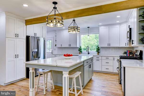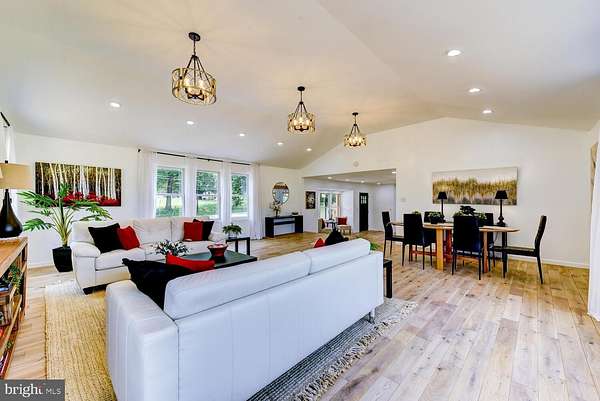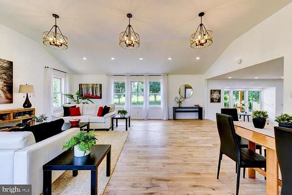 Totally Renovated 4BR/3.5BA Home on 6.46 Acres Bordering Hopewell Borough: Discover the perfect blend of rural charm and modern luxury at this fully renovated home, nestled on 6.46 acres just outside Hopewell Borough. With six acres tax-assessed as a qualifying farm, complete with a barn and chicken coop, this property is ideal for those interested in homesteading, hobby farming, or simply enjoying expansive backyard views, while being within walking distance of Hopewell Borough's dining, shopping, and entertainment. Step inside and be captivated by the fresh, modern design, where natural light, open space, and thoughtful craftsmanship define every room. The expansive 22'x22' great room showcases vaulted ceilings, panoramic windows, and designer lighting, creating an inviting space for gatherings and everyday living. Newly installed 3/4-inch French oak hardwood floors run throughout the home, adding warmth and continuity. At the heart of the main floor is the farmhouse-style kitchen featuring custom wood cabinetry, quartz countertops, a large center island with seating, a farmhouse sink, a wine refrigerator, and a full suite of GE appliances-including refrigerator, double oven, stove, microwave, and dishwasher. The adjacent dining area flows seamlessly into the open layout, perfect for entertaining. The home offers two spacious primary bedroom suites-one on each floor-each with walk-in closets and stunning en-suite bathrooms outfitted with new tilework, vanities, fixtures, and walk-in showers. The main floor suite opens directly to a 20'x20' deck overlooking the peaceful acreage, while the upstairs suite includes its own private balcony. Two additional upstairs bedrooms share a full bath with a tub and a convenient laundry area with washer and dryer. Renovations extend beyond the aesthetic, with all-new plumbing, electric, ductwork, drywall, and trim. A 2024-installed dual-zone HVAC system ensures comfort year-round. The home also includes a mudroom entry from the garage, a powder room, refinished staircases, and an insulated attic. A second laundry hookup is available in the basement. The exterior has been completely updated with new siding, stonework, roof, energy-efficient windows, and fresh landscaping. A newly paved driveway leads to the oversized two-car garage with new doors and openers. Enjoy the wide front porch for relaxing evenings or take in the tranquil views from the spacious backyard deck. Whether you're dreaming of farm-fresh living or simply want space and style close to town, this Hopewell gem delivers the best of both worlds.