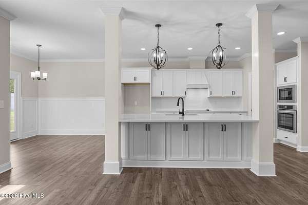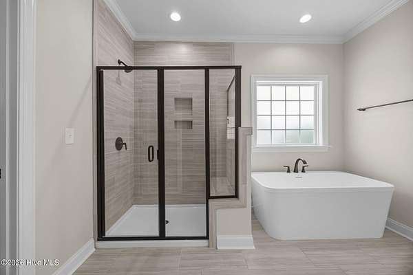 Step into luxury with the Graystone plan! This stunning home welcomes you with an open-concept layout, an oversized kitchen island, premium level 3 quartz countertops, a wall oven/microwave, gas cooktop, and elegant under-cabinet lighting--perfect for entertaining and everyday living. Retreat to the downstairs master suite with a tray ceiling and a spa-inspired ensuite featuring a freestanding soaking tub and a separate designer tile shower. The first floor also offers a guest bedroom, a dramatic formal dining room, and a screened porch for year-round enjoyment. Impressive wainscoting highlights the grand two-story foyer, complemented by modern LED lighting throughout. Upstairs, discover two spacious bedrooms and bathrooms, a large recreation room, and a versatile bonus room--ideal for family fun or a home office. Enjoy peace of mind and effortless convenience with an included premium smart home package! Stay connected and secure with a Skybell Video Doorbell, Z-Wave Smart Door Lock, and T6 Z-Wave Smart Thermostat--all controlled from an intuitive touchscreen panel.