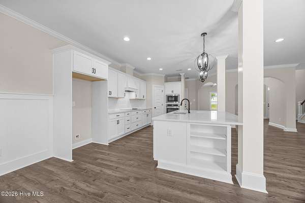 - Ceiling Fan(s), Eat-In Kitchen, Entrance Foyer, Gas Log, Kitchen Island, Master Downstairs, Pantry, Solid Surface, Tray Ceiling(s), Walk-In Closet(s), Walk-In Shower, Wired For Data