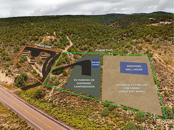 Rare opportunity to own 5.78 acres of prime highway frontage on scenic Hwy 89 between Zion and Bryce Canyon National Parks. Features two elevated points with incredible views and a flat, accessible area across the wash for full use of the 5.78 acres. Perfect site for a glamping resort, tiny homes, RV park, several short-term rental homes or a personal getaway. This property overlooks the Sevier River Valley along with red rocks, cedars, and meadows. Includes 2 acre-feet of domestic approved water, enough for 8 part-time or 4 full-time units. This would be a fantastic long term investment. Listing agent is related to seller and the land owner has an active real estate license. All information is deemed reliable but not guaranteed, buyer to verify all.