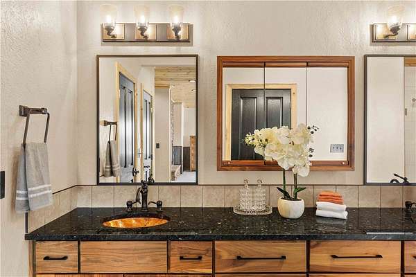 Rising on the far western edge of Billings with views of the iconic Rimrocks, Copperstone Estate is a remarkable Montana retreat offering privacy, open space, and convenient access to Billings' West End minutes away. The home blends authentic Montana rustic character with refined modern design, featuring architectural stone, timber accents, vaulted blue-stained pine ceilings, copper wainscoting, and rich wood finishes throughout. With eight spacious bedrooms and nine bathrooms, the residence offers exceptional comfort and privacy for residents and guests, including a private theater, second kitchen, and guest apartment. Large windows capture Montana's natural beauty while filling the home with natural light. Designed for everyday living and entertaining, Copperstone Estate combines lodge-style architecture and luxurious materials to create one of the region's most distinctive properties.