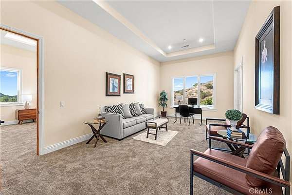 Outdoors, the property transforms into a private resort with a stunning infinity-edge pool, expansive covered patios, and outdoor entertaining areas surrounded by custom hand-laid pavers. From sunrise to sunset, enjoy sweeping views of the surrounding valleys, mountains, and the rolling greens below.