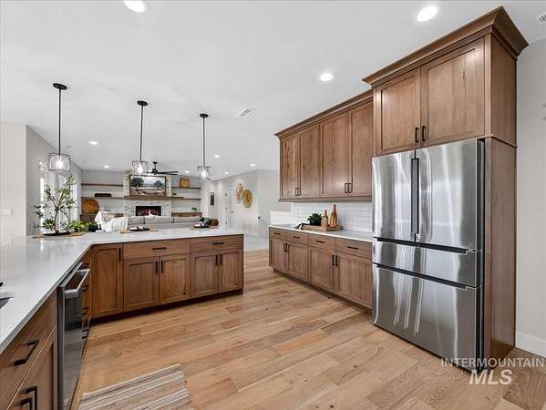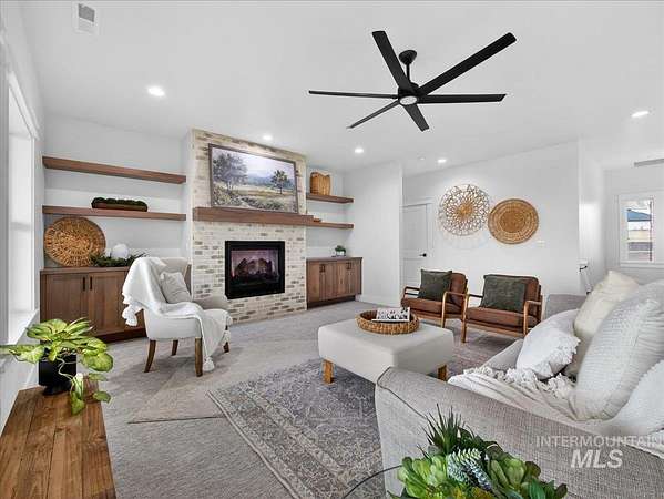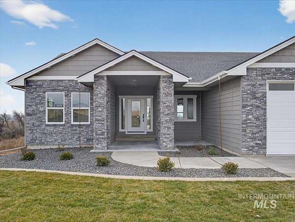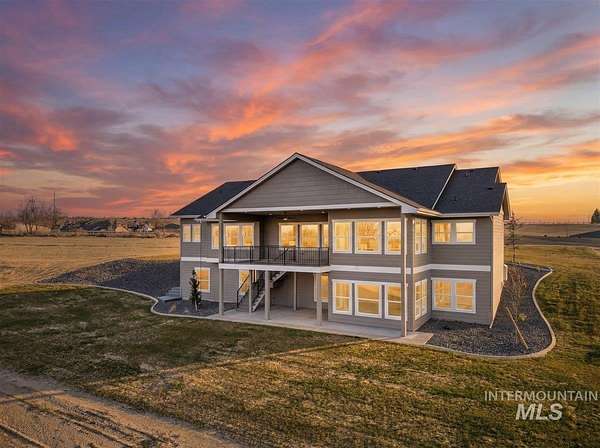 Discover luxury country living at its finest in this exceptional new construction home offering 3,722 sq ft of modern elegance on 2.10 private acres in Parma, Idaho. Featuring 5 spacious bdrms, 3 bth & an expansive, versatile recreation room that opens directly to the backyard patio, this home delivers unmatched flexibility for entertaining & everyday living. The main living space is anchored by a breathtaking fireplace & an impressive floor-to-ceiling picture window, creating a stunning focal point while flooding the home w/natural light & showcasing panoramic views-also echoed in the primary bedroom. Hardwood floors add warmth throughout the main living areas. The chef's kitchen is a true showstopper, complete w/custom cabinetry, SS appliances, beautiful granite countertops & a walk-in pantry. Thoughtful upgrades continue throughout the home, including a central vacuum system for effortless living. Enjoy exceptional outdoor living on the covered patio-perfect for morning coffee, evening unwinding & soaking in dramatic mountain sunsets. An oversized 3-car garage, RV parking & generous acreage provide endless possibilities for horses, a future shop, recreational toys, or even the addition of an ADU-ideal for multi-generational living. Located near the Snake River w/no back neighbors, offering unobstructed views & less than an hour from Boise-an ideal blend of privacy & serenity.