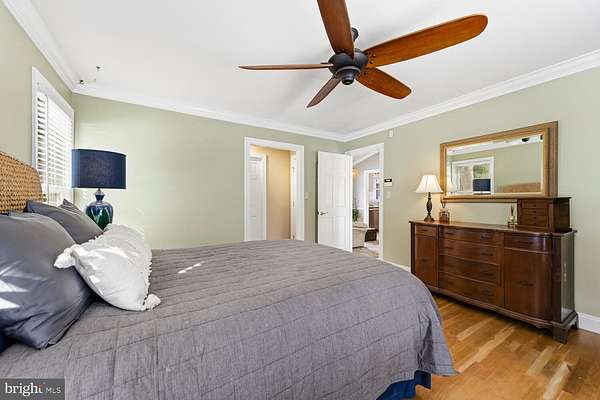 - Ceiling Fan(s), Crown Moldings, Dining Area, Exposed Beams, Open Floor Plan, Primary Bath(s), Upgraded Countertops, Walk-In Closet(s), Walk-In Shower Bathroom, Wood Floors