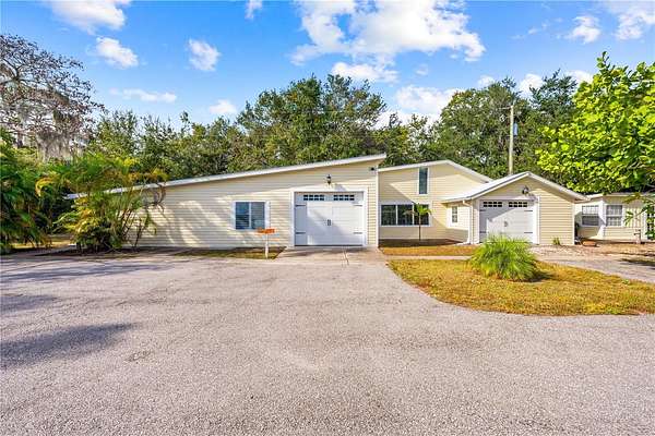TROPICAL LAKEFRONT OASIS with GUEST COTTAGE on 1.64 acres - No HOA + 2 Large DETACHED GARAGES(3 Bays) and WORKSHOP. Escape to this beautifully updated 4-bedroom, 3-bath single-story home + Cottage situated on a true lakefront lot along the private shores of Fish Lake.