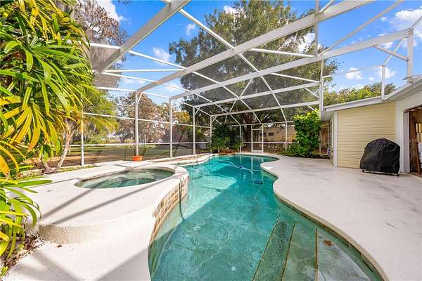 Outdoors, enjoy lush, Key West-inspired landscaping with mature plumeria, tabebuia, bougainvillea, cypress trees, and natural Florida brush. A charming bench swing hangs in the shade, adding to the peaceful, resort-style ambiance.