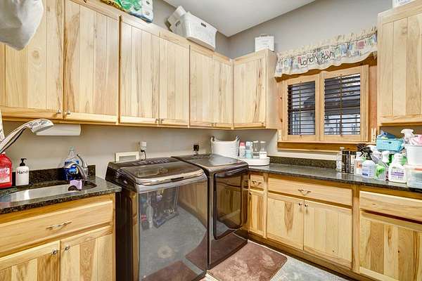 - Ceiling Fan(s), Double Vanity, Granite Counters, Insulation, Kitchen Island, Laundry On Main, Pantry, Primary On Main, Walk-In Closet(s), Washer/Dryer Connection, Window Treatments, Wood Ceiling(s)