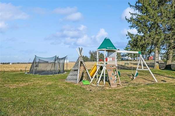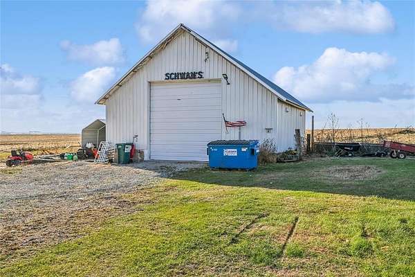 Beautiful 3-acre farmhouse with modern updates and income potential. This inviting home offers 3 bedrooms and 2.5 baths (1/2 bathroom is in the garage) A bright, open kitchen and dining area, and a pair of versatile living spaces that can function as a second living room, formal dining room, kids' play area, or home office. Enjoy updated bathrooms, newer mechanicals, and a tech-friendly touch with a Bluetooth speaker vent fan. A standout feature is the NEW 3-stall 30x35 insulated and heated garage with its own bathroom, plus an additional insulated and heated 32x32 building for workshops or storage, and a grain bin that offers potential extra income. Outside, you'll find a kids' playset, a ground-level trampoline, and 80 recently planted trees--Red Maple, Silver Maple, Black Hill, and Spruce--creating a beautiful, inviting landscape. This charm-filled farmhouse awaits your tour.